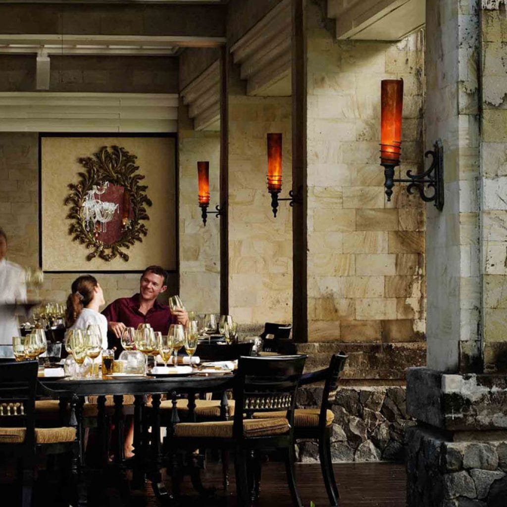 Bella Cucina at Inter Continental Bali Resort offers fine dining with authentic Italian cuisine served in the elegant ambiance of a grand dining pavilion. The restaurant is open for dinner, and also presents a Sunday brunch program with a la carte options. The culinary brigade helmed by Milan-born chef Egidio Latoracca cook up orders from behind a beautifully-designed open kitchen. There are two levels with the upper floor offering more privacy and balcony dining options with cool Jimbaran sea breezes, perfect for candlelit dinners for two. From pastas to risottos and Italian gelati for dessert, the menu offers a rich array of fine Italian dishes, with wine pairings from a fully-stocked cellar which are also available. Must-tries include a cured Norwegian salmon, Black Angus sirloin, and the chef’s personal take on the classic tiramisu. Live vocal entertainment accompanies the elegant dining experience.