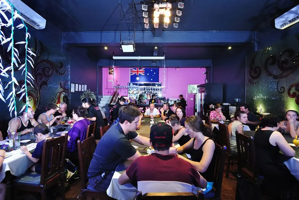 Open early for breakfast it serves the usual items, but all are listed individually so it is easy to design your own breakfast; eggs any which way, bacon, ham, German chicken or pork sausages, hash browns, omelettes and pancakes. Likewise there is a special Lunch Snack menu (salads, sandwiches, burgers) although the full menu is available all day, and quite a varied selection it provides, although some of the starters double as possible any time snacks; Vol au Vent [puff pastry shell filled with a chicken and mushroom ragout in a cream sauce], Beef Carpaccio, Duck Liver Pate, Tuna Tartar and Calamari Rings and the essential plate of Spring Rolls [5 small bite-size vegetarian rolls in crisp casing with sweet and sour sauce for dipping]. The soups include a Pumpkin and Coconut, thick and creamy, and the Salads a Nirvana Special of Roman [or Romaine] lettuce tossed with grilled chicken breast slices, the dressing blended with Roquefort cheese. The Pastas [penne, spaghetti, ravioli and tagliatelle] are sized half way between a starter and a main meal depending on your appetite. Jl. Laksmana No.50 B, Seminyak | Phone: +62 361 736 270.