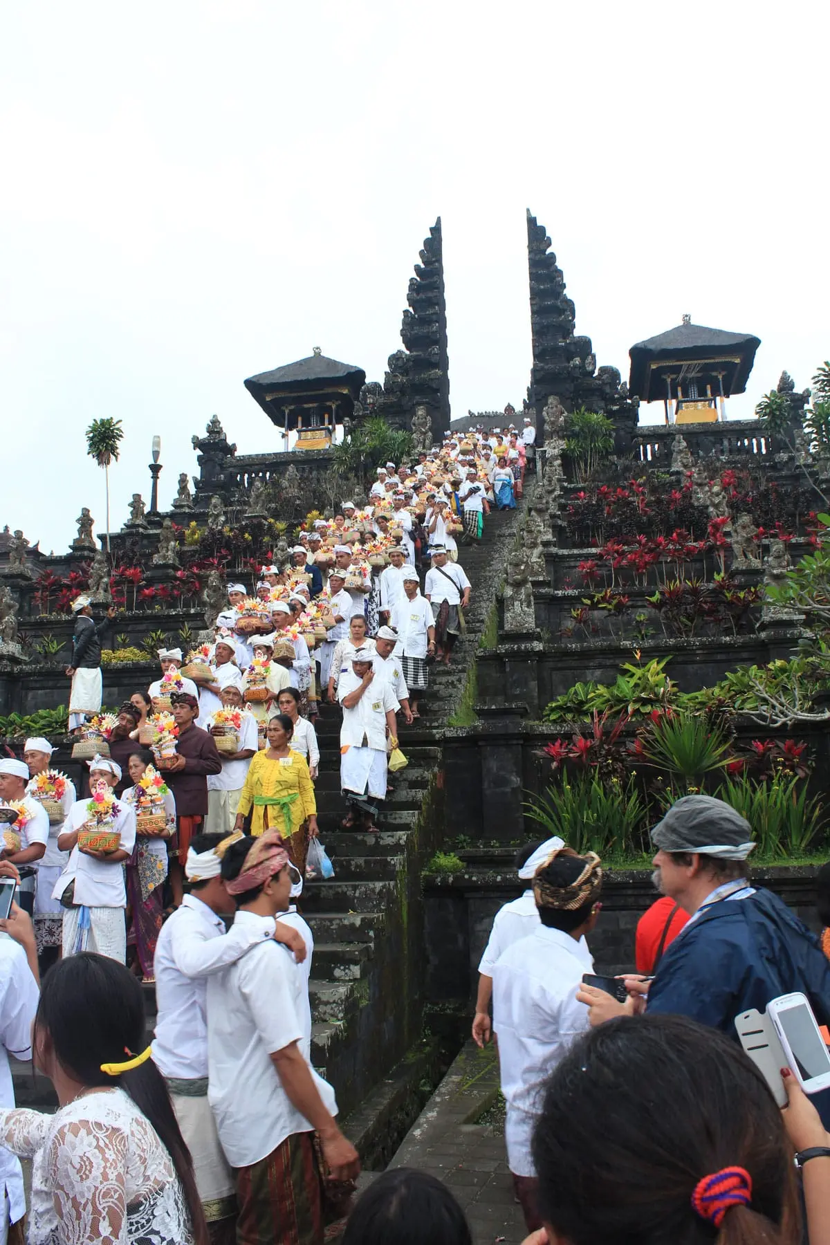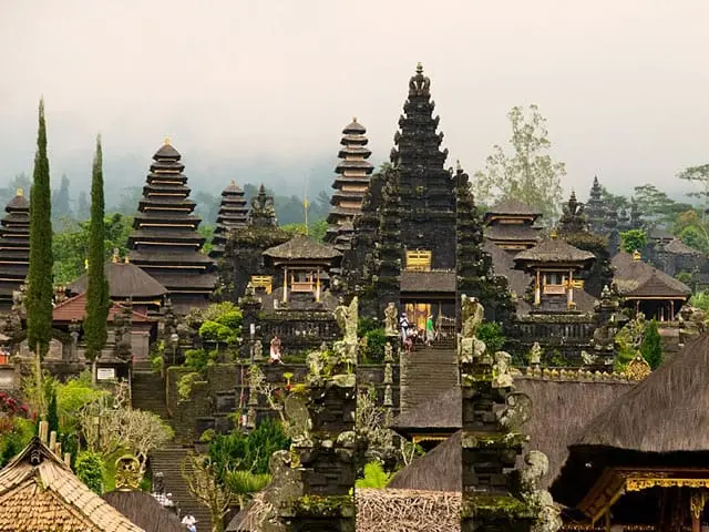 This Mother Temple is actually a complex made up of twenty-two temples that sit on parallel ridges. It has stepped terraces and flights of stairs which ascend to a number of courtyards and brick gateways that in turn lead up to the main spire or Meru structure, which is called Pura Penataran Agung. All this is aligned along a single axis and designed to lead the spiritual person upward and closer to the mountain which is considered sacred.
