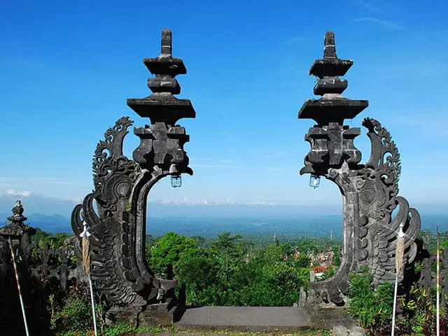 The holiest and most important temple on Bali is Pura Besakih or Besakih Temple, situated on the slopes of Bali’s sacred Mount Agung. Twinned with Mount Batur to the north-west, Agung is the highest mountain on the island, rising to 3,140 m. It is easiest to approach Besakih by taking the road north from Klungkung, a distance of 22 km. However, there are also two east-west roads, linking the Klungkung route to Besakih with Bangli in the west and Amlapura in the east.