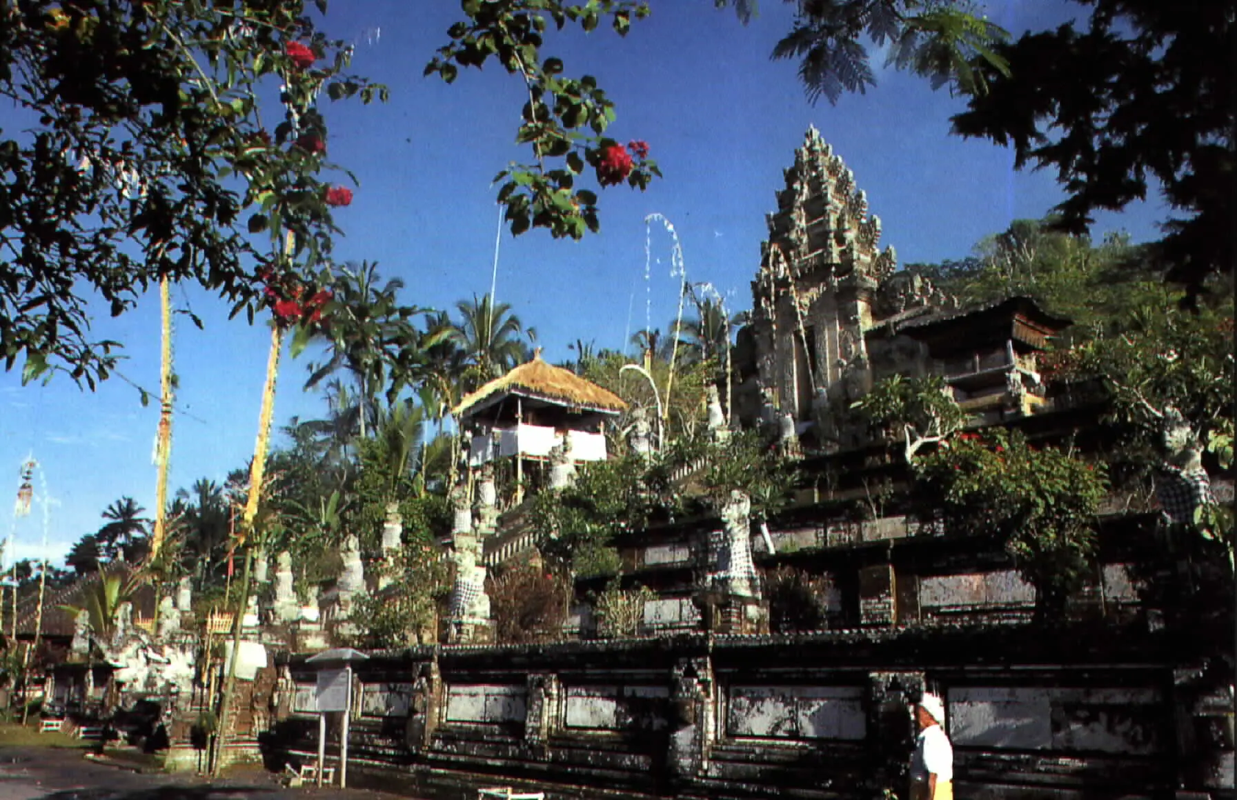 There are some particularly fine statues and paintings within the Kehen Termple complex, commencing with the highly decorated entry with carved guardian statues taken from the Hindu Ramayana classic. There are three courtyard terraces and the sacred Banyan Tree (Waringin-Ficus Benjamina) with a monks cell built up high on a platform in the branches.