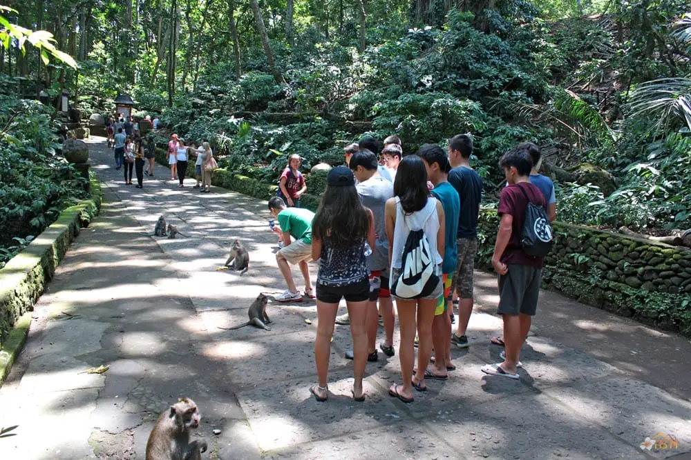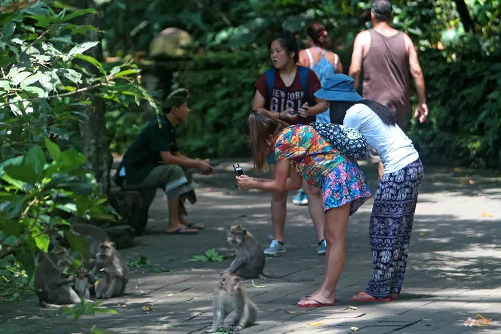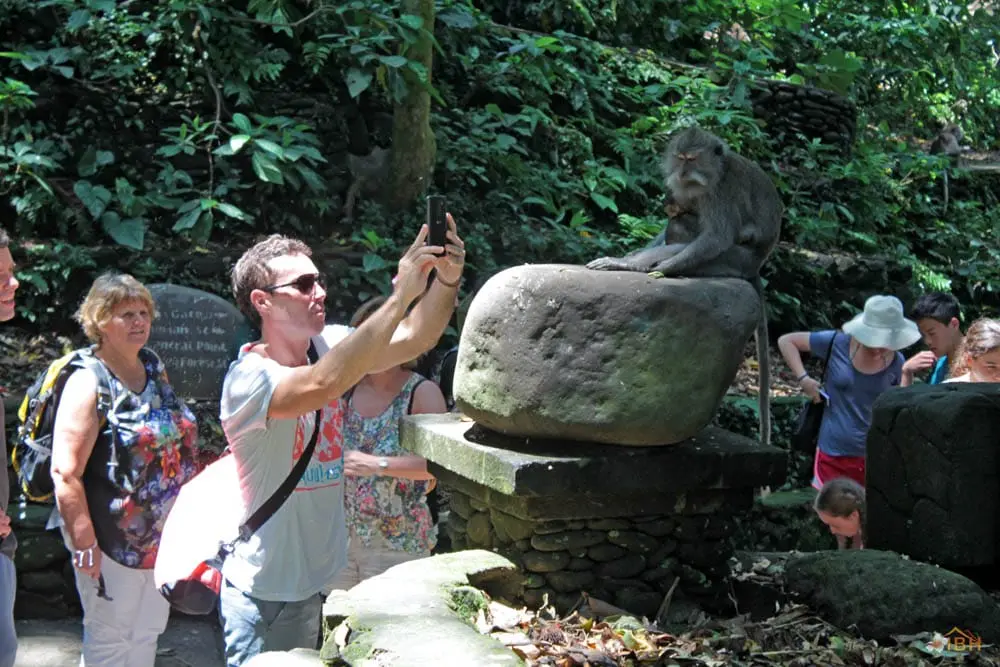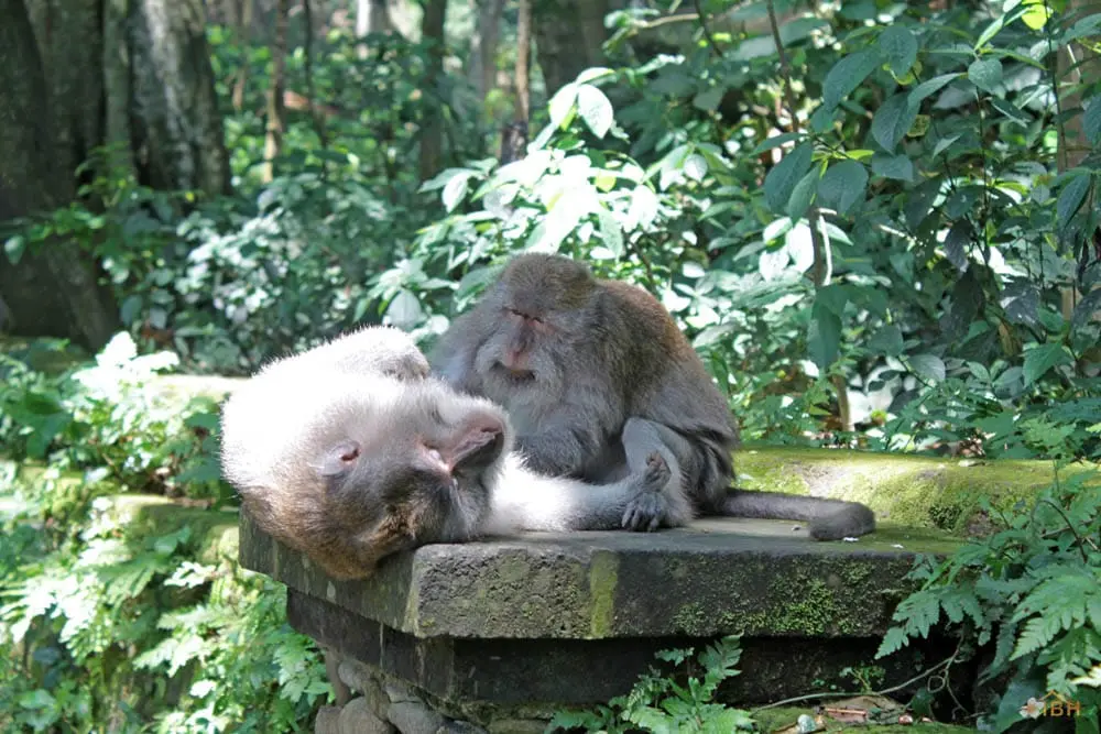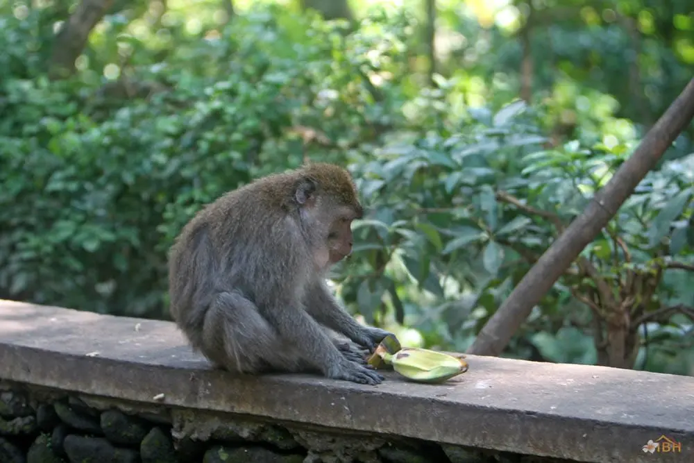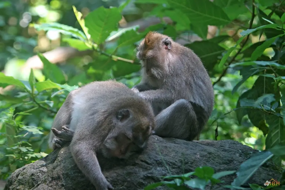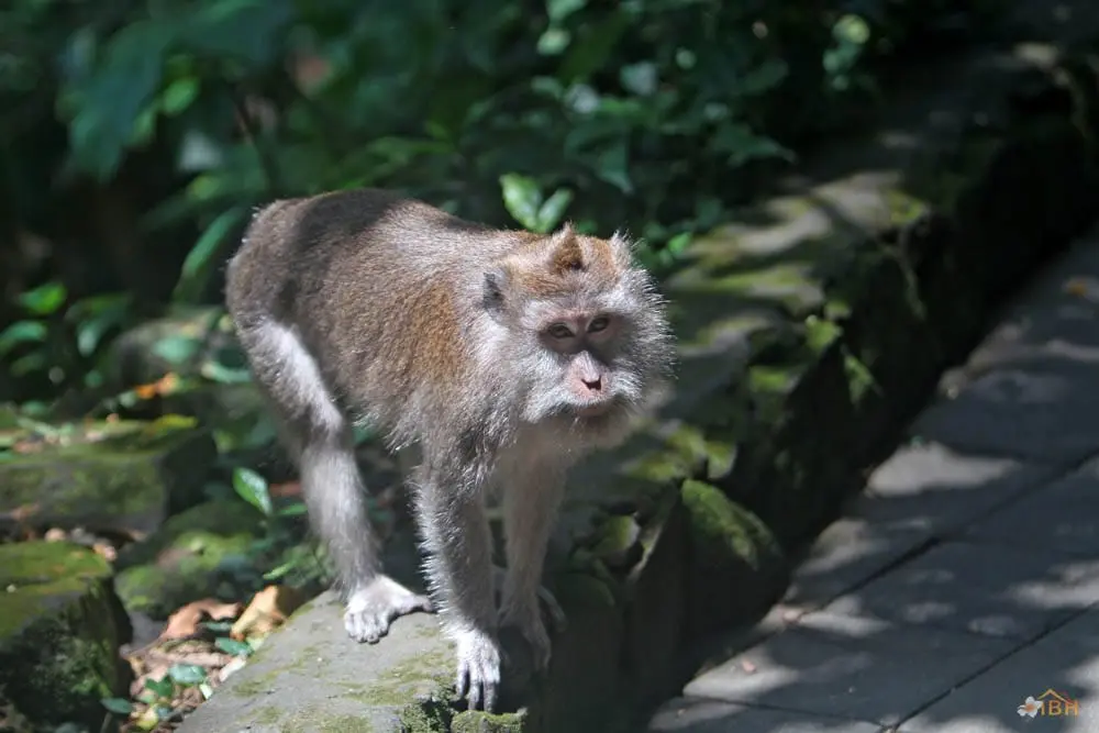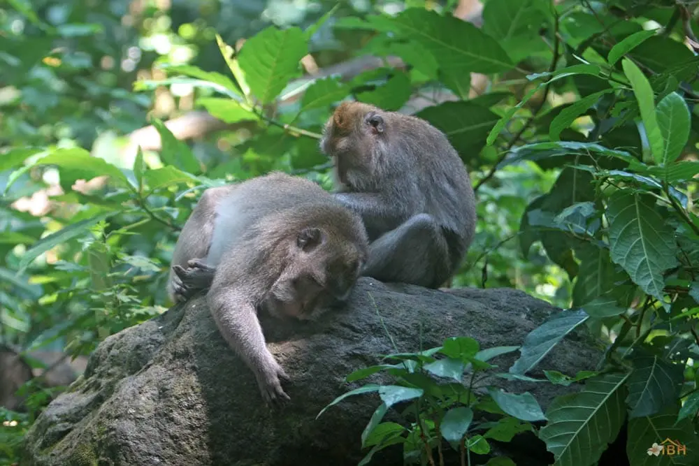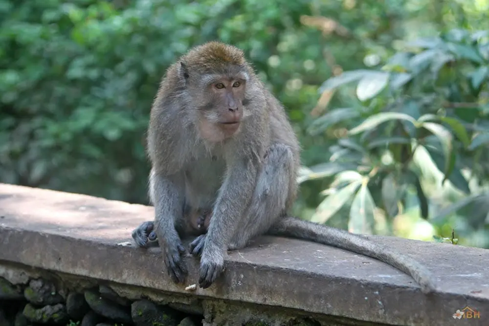 Throughout Bali, Balinese long-tailed macaques tend to stay within forested areas. However, Balinese long-tailed macaques, including those within the Sacred Monkey Forest of Padang tegal, occasionally wander into rice fields or even village areas that are adjacent to the forest. Outside of forested areas, monkeys can become pests and the Balinese tend to apply whatever means necessary to protect their crops and other property. The Sacred Monkey Forest’s long-tailed macaques are the subject of an ongoing research project that is being conducted by the Balinese Macaque Project. The Balinese Macaque Project involves researchers from the United States, Guam, and the University of Udayana (Bali, Indonesia). To date, the Balinese Macaque Project has conducted research to determine the mating strategies, migration and range patterns, dominance relationships, and habitat use of Balinese long-tailed macaques. The Balinese Macaque Project hopes that such research will facilitate the development of conservation strategies for Balinese long-tailed macaques and sites like the Sacred Monkey Forest of Padang tegal.