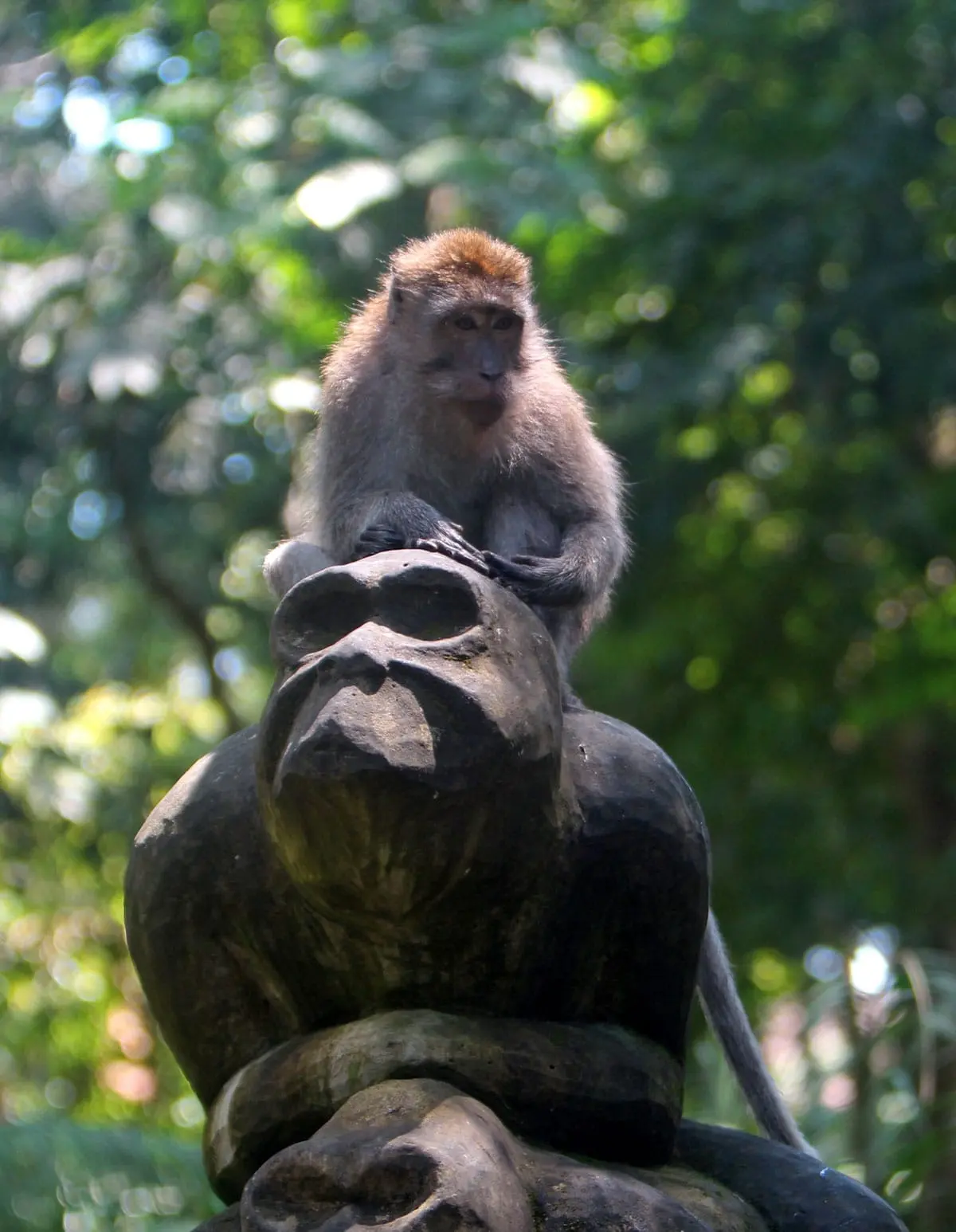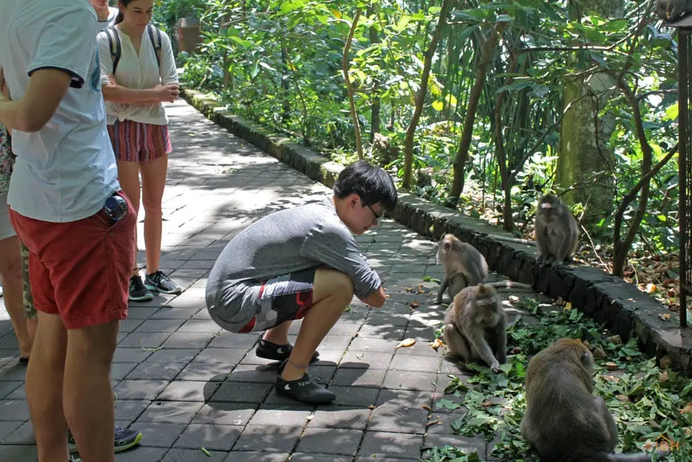 The monkeys within the Sacred Monkey Forest of Padangtegal are commonly called long-tailed macaques. Their scientific name is Macaca fascicuiaris. Macaques are found throughout Southeast Asia and many species of macaques live successfully in areas that are heavily utilized by humans. On Bali, there are Balinese long-tailed macaque troops (populations) that live in areas where they have little to no contact with humans and troops that come into contact with humans on a regular basis. However, despite the fact that many species of macaques thrive in areas that are heavily utilized by humans, there is evidence that the viability of Balinese long-tailed macaques (the ability of macaques to continue to thrive) may be dependent upon the conservation of Bali’s forested areas.