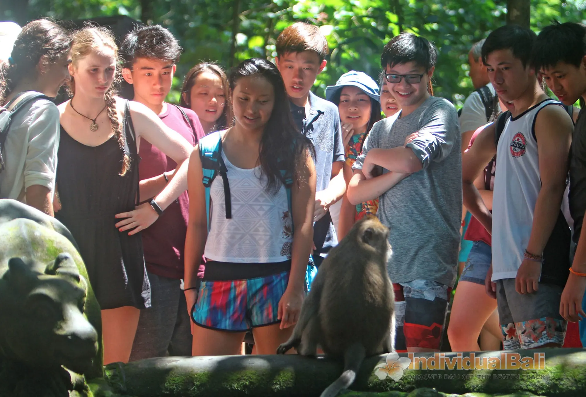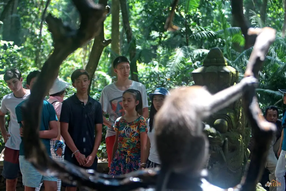 Currently, there are approximately 340 (32 adult males, 19 male sub adult, 77 adult females, 122 juvenile and 54 infants) Balinese long-tailed macaques that inhabit the Sacred Monkey Forest of Padangtegal. However, these long-tailed macaques do not belong to the same troop. In fact, within the Sacred Monkey Forest, there are 4 distinct troops. Tourists tend to have a difficult time identifying the Sacred Monkey Forest’s long-tailed macaque troops. One reason for this is that the area(s) that each of the troops primarily occupy within the boundaries of the Sacred Monkey Forest changes over time. Changes in the range of each troop is dependent in part upon variations that occur in the number of individuals within each troop and changes that occur in each of the troops’ composition (the age and sex of individuals within a troop).