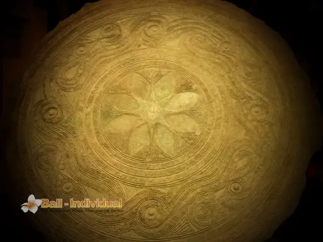 Why does this artifact carry the name Moon of Pejeng? Legend states that the drum used to be a wheel of the chariot which drives the moon on its nocturnal journey through the sky. This illuminated wheel fell from the heavens and landed in a tree near the Penataran Sasih temple, where it has been housed since its “fall’. One night, a thief broke into the temple and was annoyed at the brilliant light which revealed his deeds.