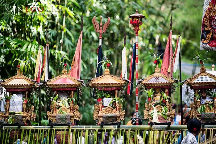 The villagers of Penglipuran perform regular prayers and rituals; for individual families and collectively as residents of the local community. If you visit the village during religious or ceremonial processions, you will be privileged to see unique cultural practices that remain specific to the region. The spatial layout of the village is unique and is aligned to the spatial concept in Hinduism. Village territory is divided into three parts called the tri mandala. In the north corner of the village there is a shrine (called Pura Bale Agung), in the middle of the village are the parks, communal areas and residential homes. In the south or ‘lowest part’ there is a cemetery complex (called Setra). The concept of tri mandala not only applies to the layout of the village, it is also reflected in residential homes. Each home is likewise divided into three parts; the front and entry is the gate (angkul-angkul) and an empty space (called Natah), at the centre are the family living and sleeping areas, and at the very back are the facilities, washing areas and where animals are housed.