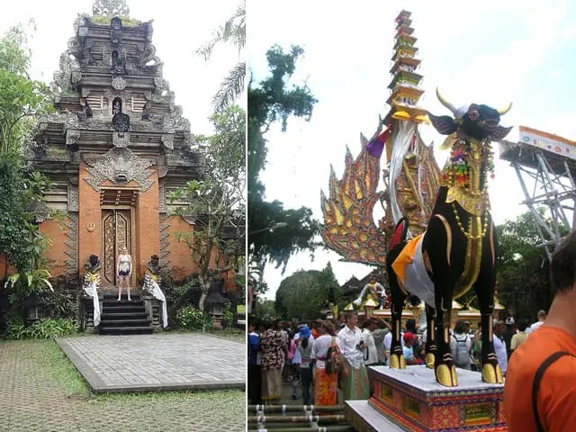 Ubud boast many gamelan troupes; on Monday nights, the puri sponsors its Legong show, and the “Release from World Disaster Drama” is held in Petulu. On Tuesday, the Shout Ubud Club (across from Canderi’s on Monkey Forest road) holds its Rajapala revue. Thursday is the Gabor dance at Ubud Kelod, Friday is the Calon Arang dance at Pure Saren and Sunday is the Kecak in Padang Teges (see Entertainment in Travel Tips). From the living traditional of the arts, les up now move back in time in several thousand years. Just a few miles from Ubud sits the former capital of Bali – Pejeng – and around it the most densely packed area of antiquities on the entire island.