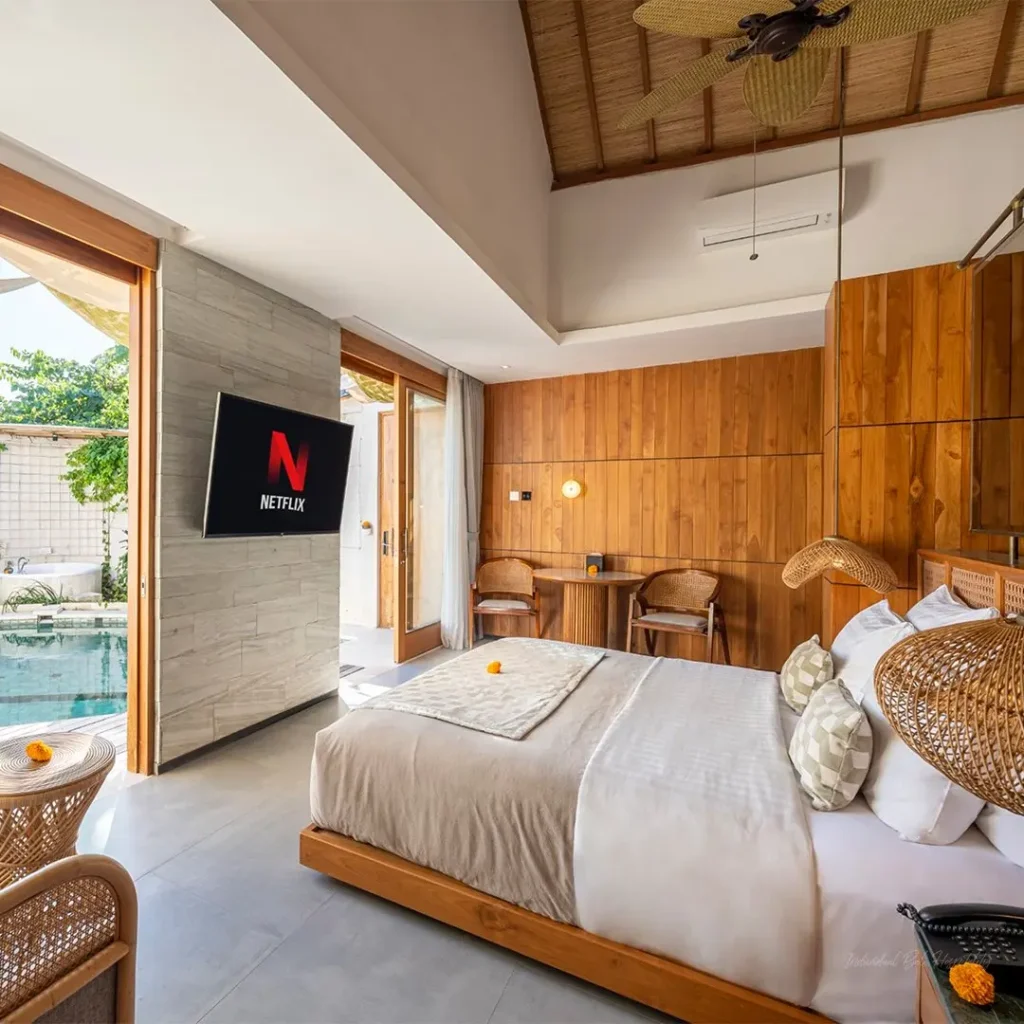 For couples seeking a luxurious and tranquil escape in the Seminyak area, Windu Asri is an excellent choice. This villa complex offers spacious and elegant villas, each with its own pool and lush garden. The villas are tastefully decorated with a mix of modern and traditional Balinese elements. Windu Asri provides a private chef who can prepare gourmet meals for you and your loved one, allowing you to savor delicious cuisine without leaving your villa.