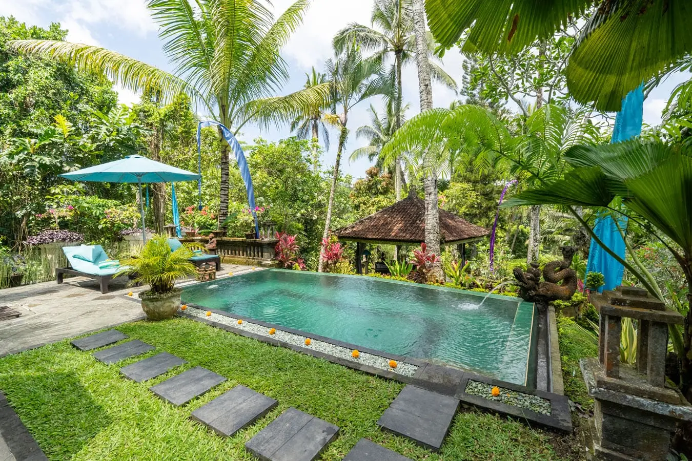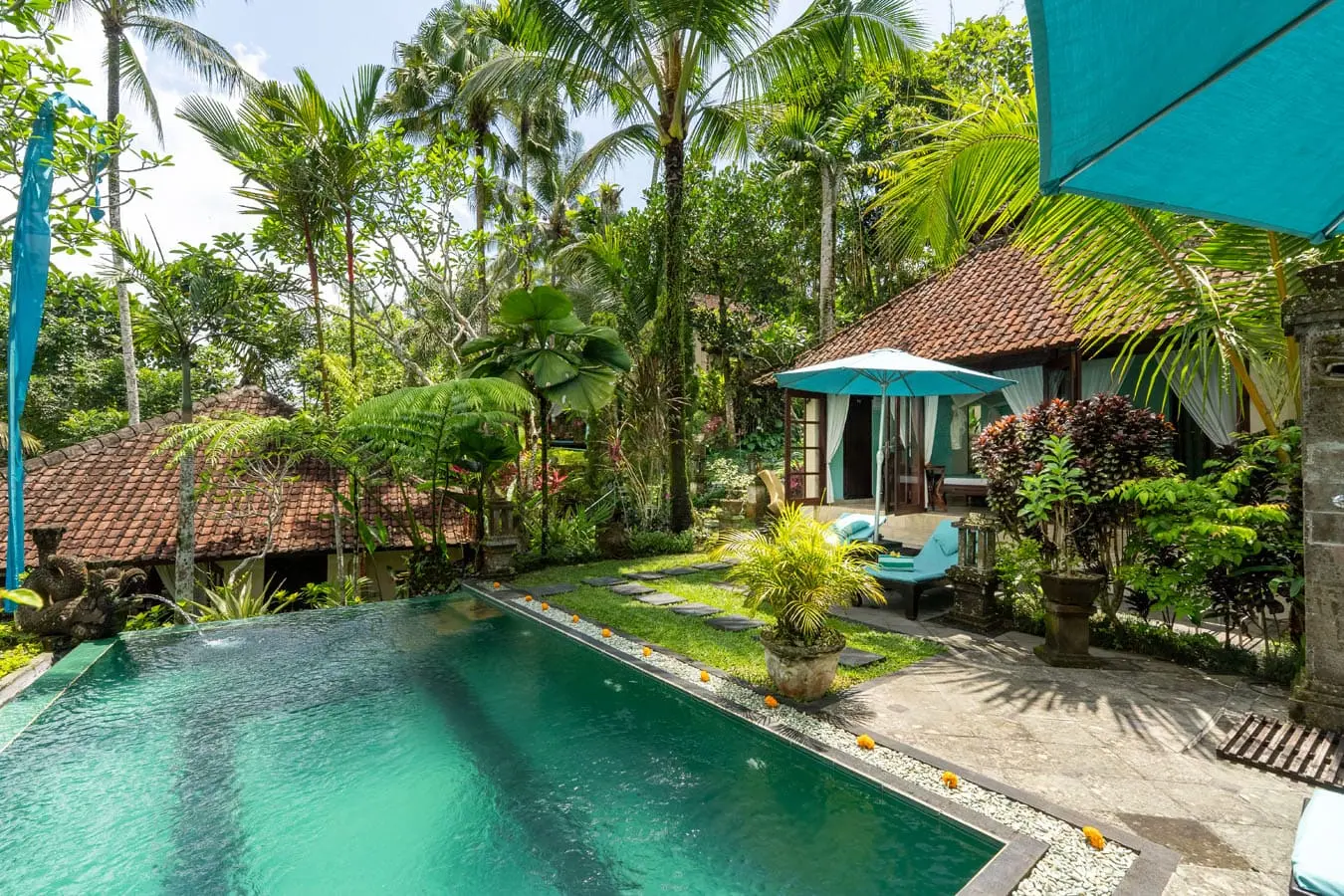 Built on the edge of a deep jungle valley with spectacular view of the Pakerisan River where you will hear nothing but the sounds of nature, this 2 bedroom villa does an absolute paradise for lovers of nature and those want to experience a mystic area that will amaze you with its cultural ingenuity.