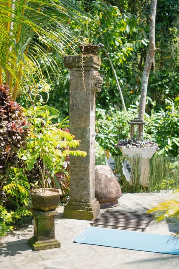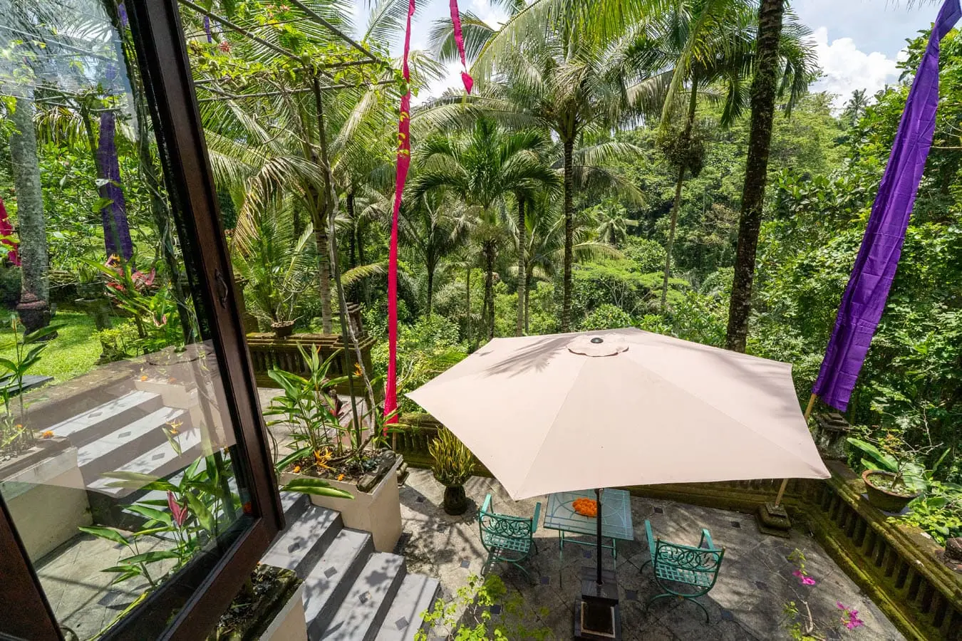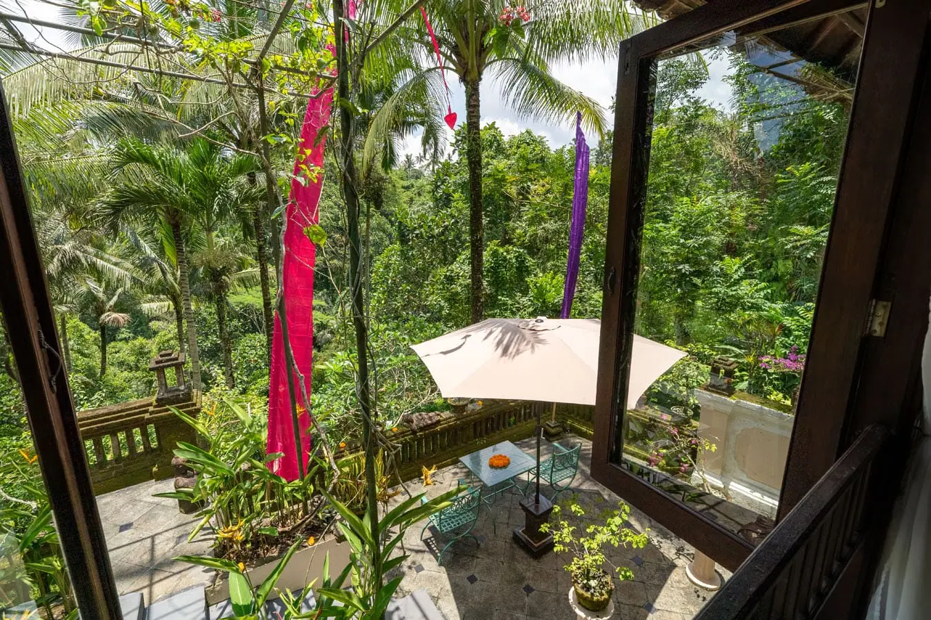 Deck chairs are available for sunbathe on the loungers or read a book in the shade of the parasol. The Buddha terrace by the pool is also another great place to relax and have drinks at the antique table and chairs, surrounded by greenery, Buddha sculptures and the impressive jungle valley in front of you.