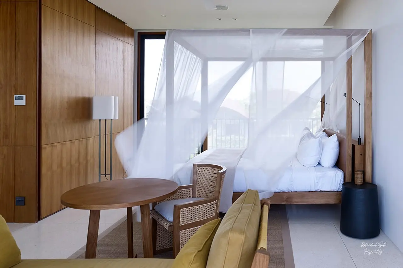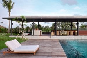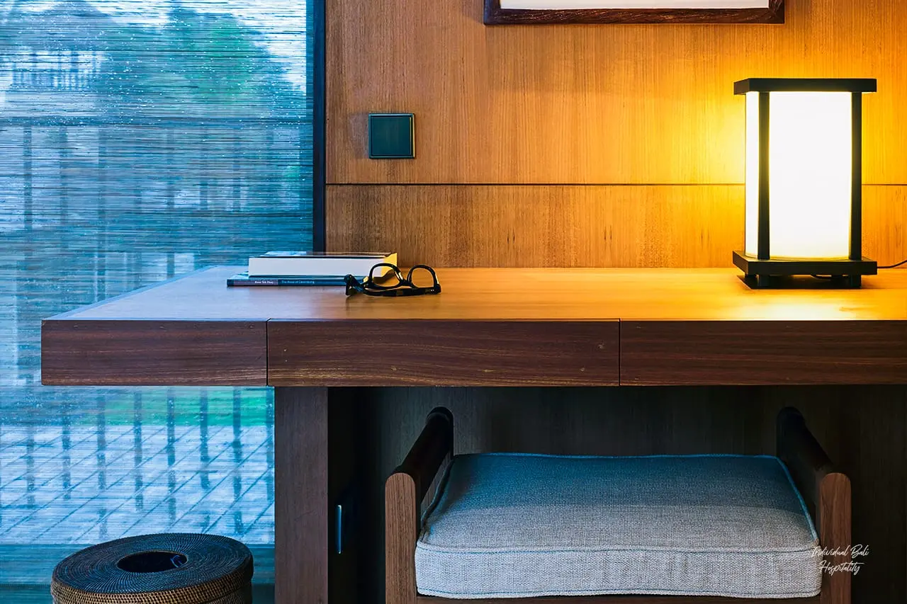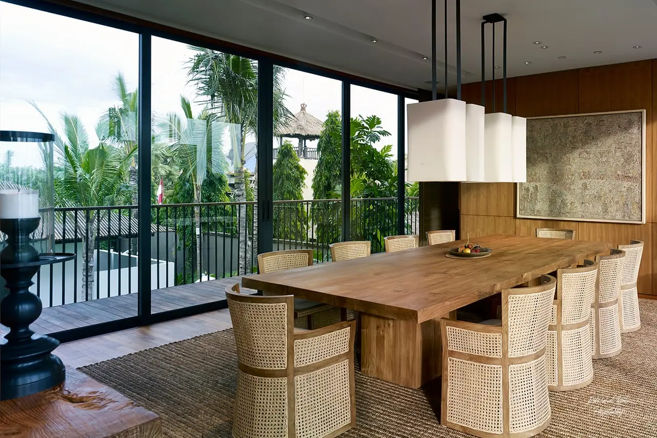 Designed by a renowned Singaporean architect and styled by an Australian interior designer, the villa blends minimalist architecture with warm, natural textures—split bamboo panels, woven grasses, and custom furniture. European and Indonesian textiles add layers of sophistication, complemented by carefully curated lighting and bespoke décor.