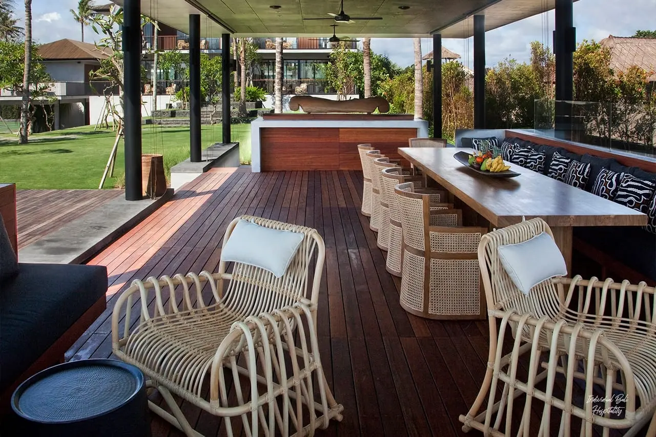The vast 4,500 sqm terraced lawn offers a spectacular setting for intimate weddings, stylish soirées, or special events. The beachfront and poolside balé provide the perfect backdrop for sunset cocktails followed by dinners prepared by a private chef, featuring Western and pan-Asian cuisine.
