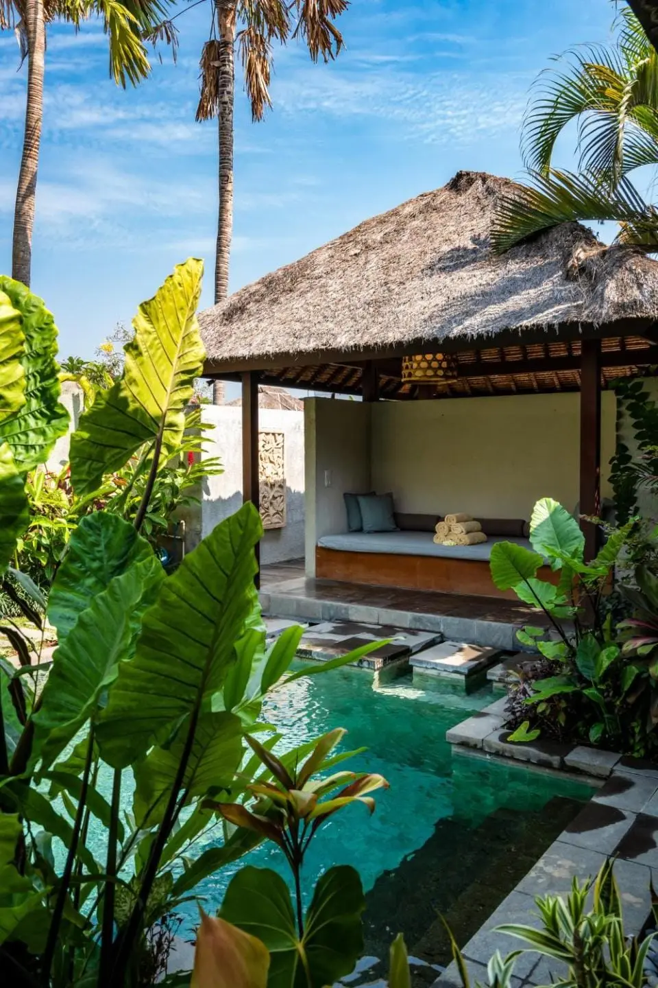 Nestled in the heart of Bali’s lush landscapes, Bumbak Park Villas is a tranquil oasis offering 9 private villas, each with its own unique style and ambiance. Set within a sprawling 4,000 square meters of meticulously landscaped tropical gardens adorned with native and exotic flora, this enchanting retreat combines luxury with nature. Popular amenities include an outdoor swimming pool, complimentary WiFi, an airport shuttle, family rooms, free parking, non-smoking options, air conditioning, and a delectable breakfast.