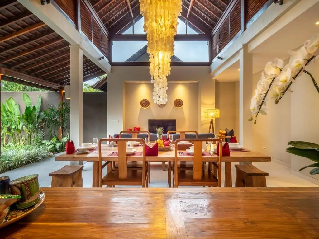 Nestled in the heart of Bali’s lush landscapes, Bumbak Park Villas is a tranquil oasis offering 9 private villas, each with its own unique style and ambiance. Set within a sprawling 4,000 square meters of meticulously landscaped tropical gardens adorned with native and exotic flora, this enchanting retreat combines luxury with nature. Popular amenities include an outdoor swimming pool, complimentary WiFi, an airport shuttle, family rooms, free parking, non-smoking options, air conditioning, and a delectable breakfast.