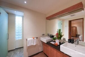 Each bedroom features king sized beds, soft linens, mood lighting, and air conditioning, ensuring restful nights and serene mornings. The en-suite bathrooms are luxurious, with marble finishes, rain showers, and deep soaking bathtubs that invite you to relax.