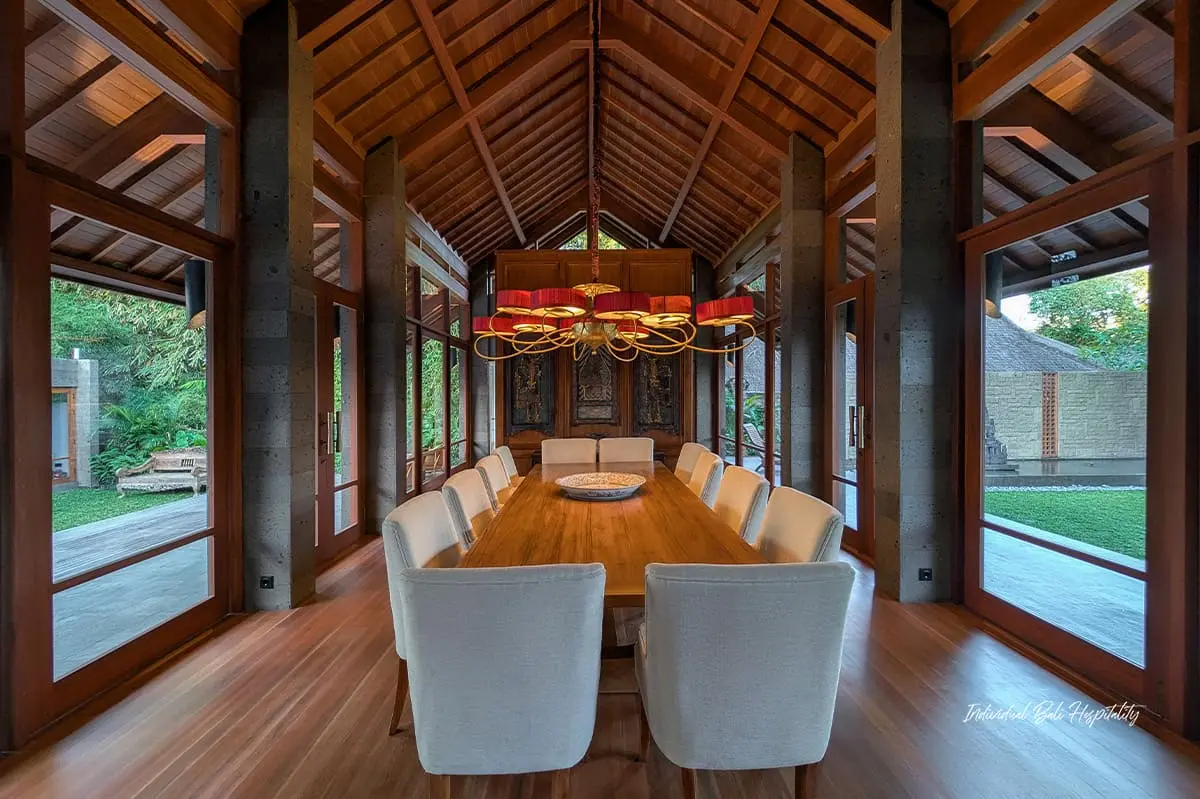 - Open-plan living and dining area overlooking the pool and lush tropical gardens