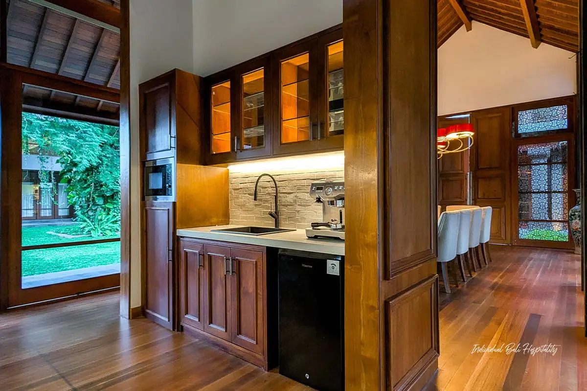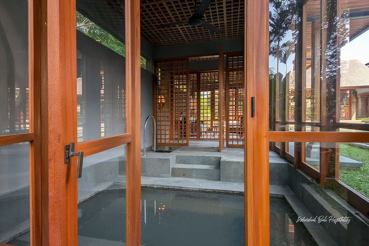 Wellness is an integral part of the Jeeva Tirta experience. Rejuvenate in the Japanese-style onsen, unwind in the private sauna, or indulge in a Balinese massage in the dedicated spa room. For guests who wish to stay active, the villa features a fully equipped fitness center, with personal trainers available upon request.