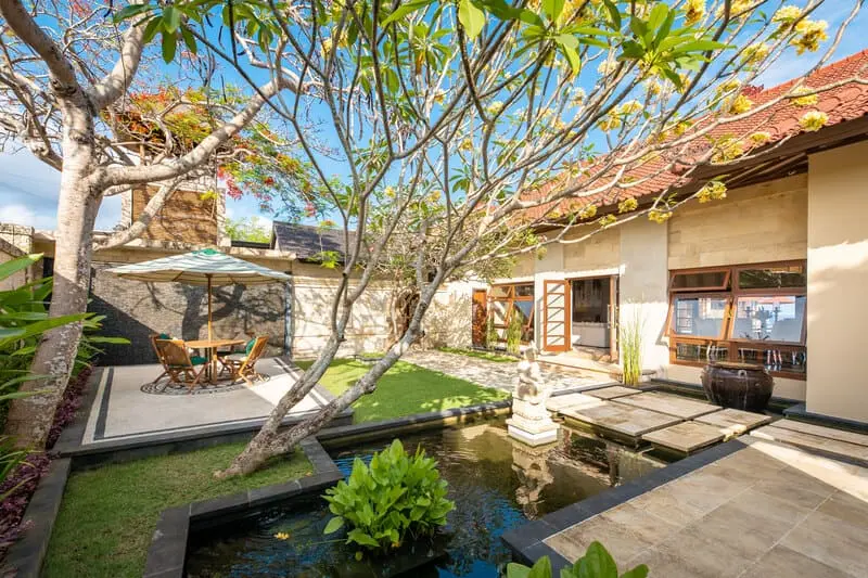 Upon entering the grounds, you’ll be enveloped in a sense of tranquility, greeted by a picturesque koi fish pond. The villa’s unique U-shaped layout ensures privacy and a seamless flow between common spaces and the inviting swimming pool.