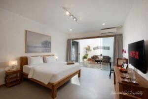 The spacious living and dining areas are designed for socializing and relaxation, providing ample room for everyone to gather. Each bedroom is equipped with air-conditioning, an ensuite bathroom, a mini fridge, a 55” Smart TV, and complete amenities to ensure comfort throughout the stay. Entertainment options include PS4, karaoke set, high-speed WiFi, and premium streaming services.
