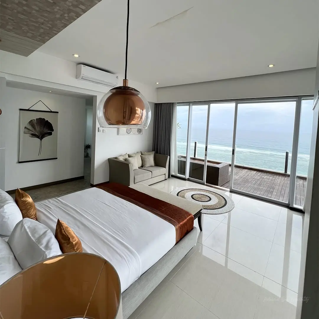 - Infinity pool seamlessly blends with the horizon, offering stunning ocean panoramas.
