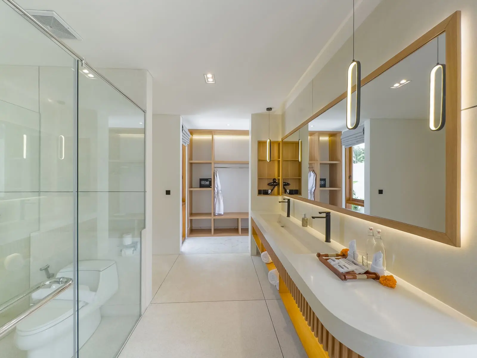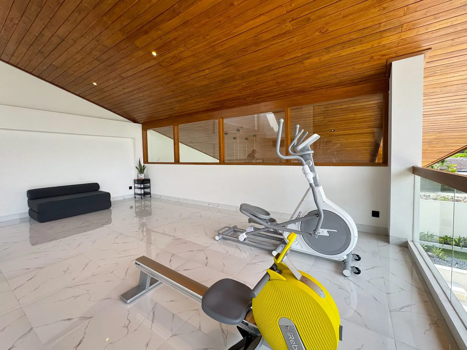 Perfect for families, groups, or couples, the villa is designed for both relaxation and recreation. Guests can unwind in the entertainment room, stay active in the private gym, or enjoy friendly games at the international billiard table. The open-plan living and dining area connects seamlessly to the pool deck, creating the ideal setting for intimate gatherings or lazy afternoons.