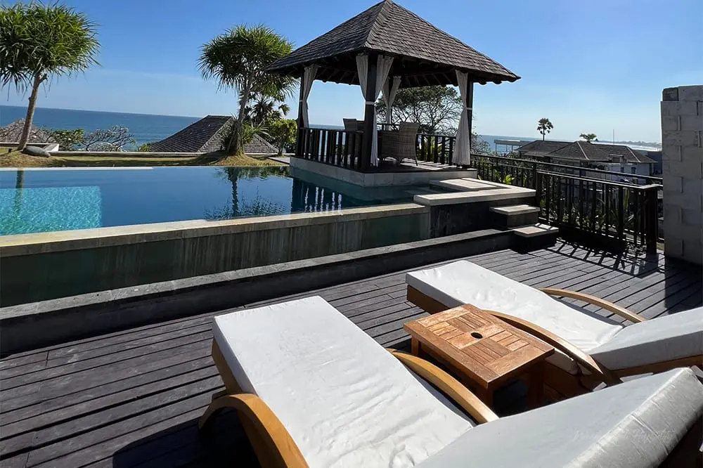 - Private infinity pool with sun loungers and a poolside bale.
