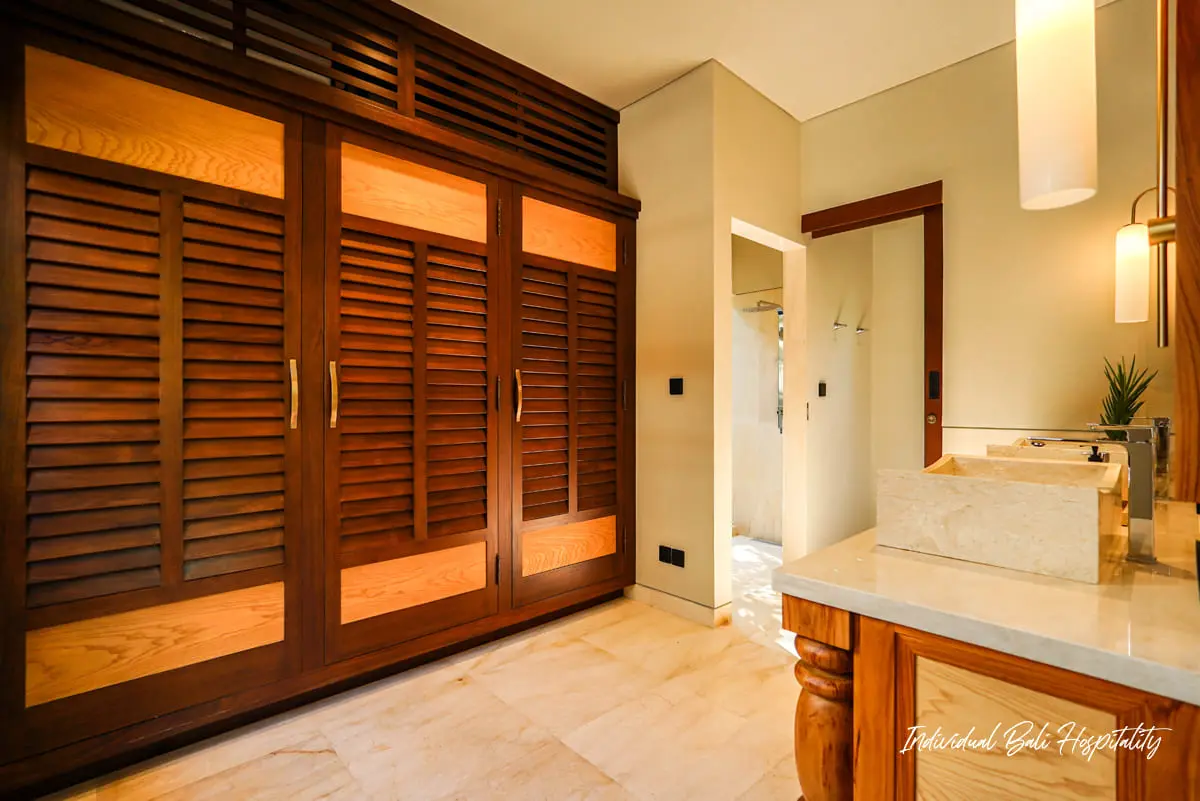 This beautifully designed villa features three spacious bedrooms, each thoughtfully positioned to capture uninterrupted views of the surrounding greenery. Every room is equipped with a king-size bed, smart TV, and a sophisticated ensuite bathroom featuring rainfall showers, elegant lighting, and premium finishes creating a relaxing, spa-like experience throughout your stay.