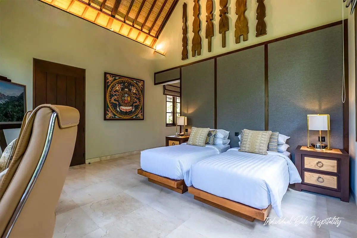 The Ubari Bali Villa is a private luxury retreat designed to offer comfort, tranquility, and a deep connection with nature. Nestled beside a peaceful riverside and surrounded by lush forest, the villa provides a calm atmosphere while remaining just minutes from Ubud’s cultural center.