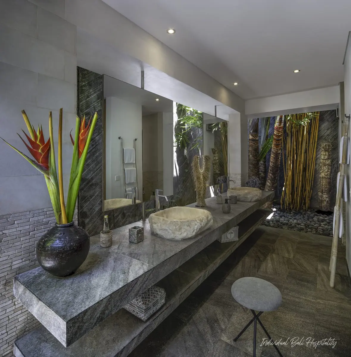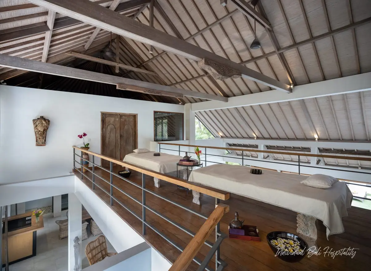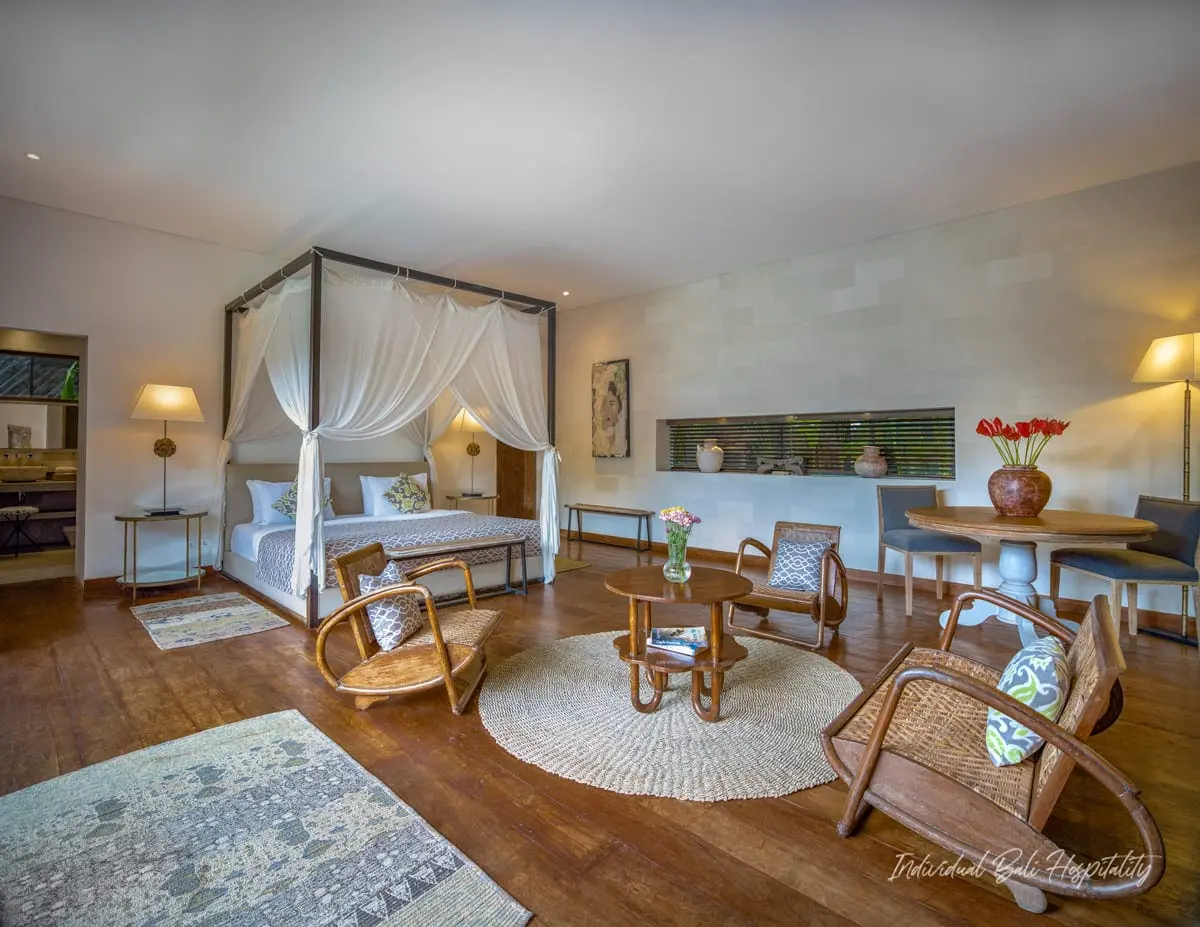 One of the highlights of Villa Abaca is its stunning swimming pools, boasting four pristine 13 to 18-meter pools. The pools feature large shallow areas for in-water sunbathing sessions, perfect for families with kids. The traditional Balinese “Payung” umbrellas provide comfortable shade in the water, ensuring a relaxing and enjoyable poolside experience.