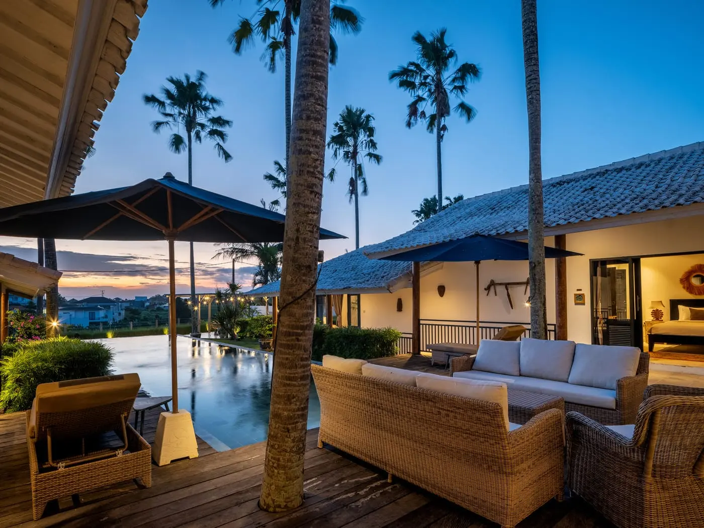• Stunning Outdoor Area – Large swimming pool, BBQ space with rice field views, and ambient fairy lights for cozy evenings.