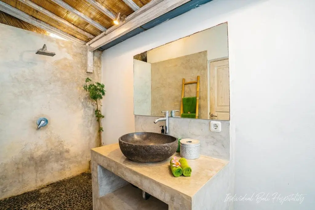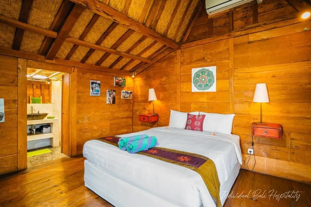 - The standout feature: a wooden Joglo-style bedroom on the upper floor with a bamboo-roofed shower bathroom, letting in natural light for a refreshing, nature-inspired experience