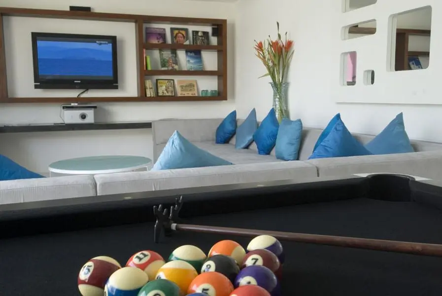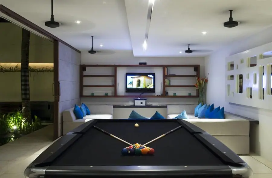Villa Aqua is designed to cater to all your entertainment needs. The main villa is built around the pool, creating an enclosed courtyard and pool garden. The living areas are diverse, with indoor and outdoor spaces suitable for various uses. The villa also features a media/TV room with a large Smart TV, perfect for entertaining both adults and children alike.