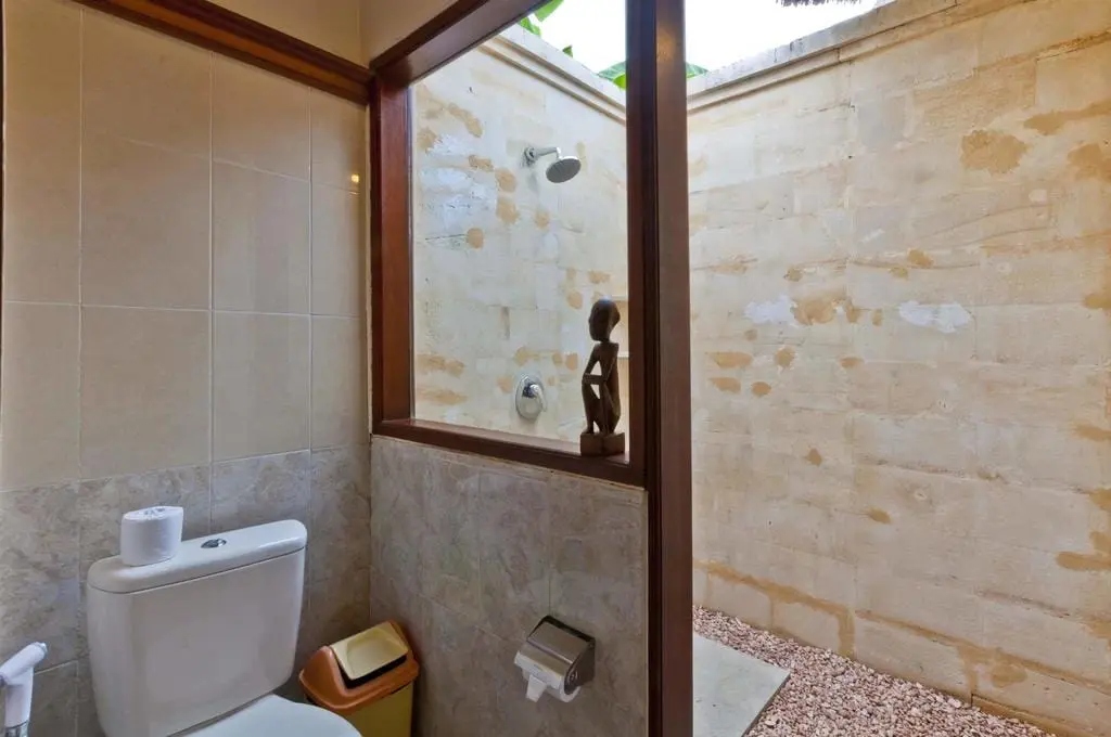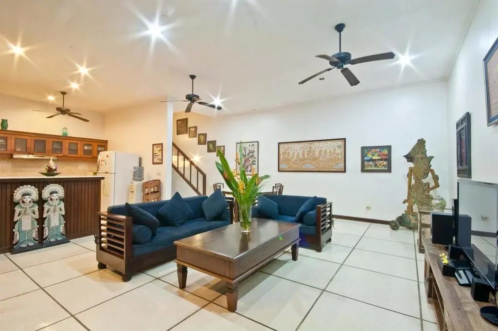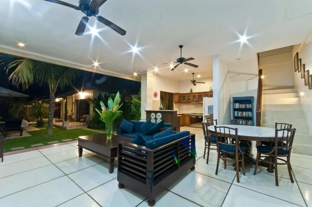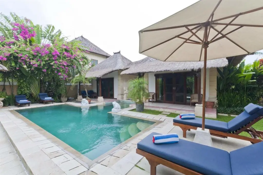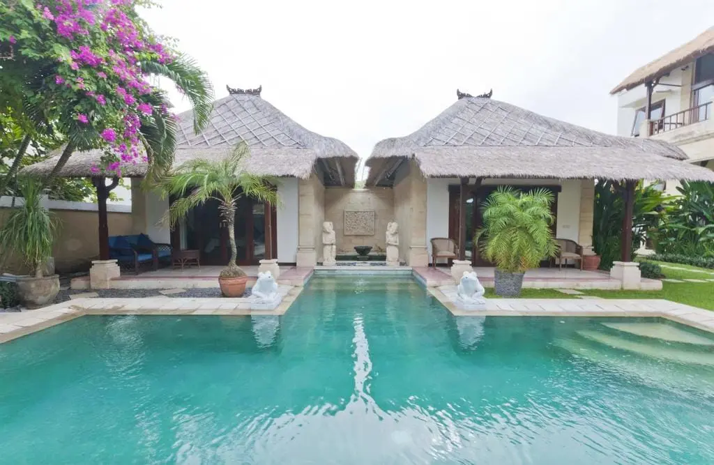 Nestled in Seminyak, Villa Arjuna boasts 3 bedrooms and traditional Balinese furnishings that create a cheerful, comfortable ambiance. The villa’s décor is punctuated with artwork, including antique sculptures collected from across Indonesia by the owner, adding to its charm and beauty.