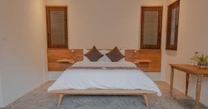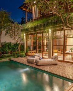 Villa Ascarya offers a luxurious retreat for up to six guests, featuring a private entrance and an 8.5-meter swimming pool. The villa’s minimalist design, with polished concrete floors and subtle ornamentation, creates a modern and serene ambiance.