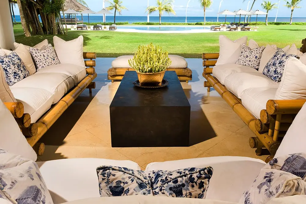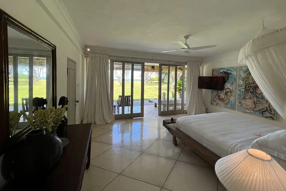 Villa’s location is second to none, with 100 metres of absolute beachfront and stunning ocean views from all over the estate. The villa’s privacy is protected by one and a half acres of mature gardens (bordered by the beach and a small river), but only steps away are the wild expanses of black-sand beaches that stretch to the horizon in either direction.