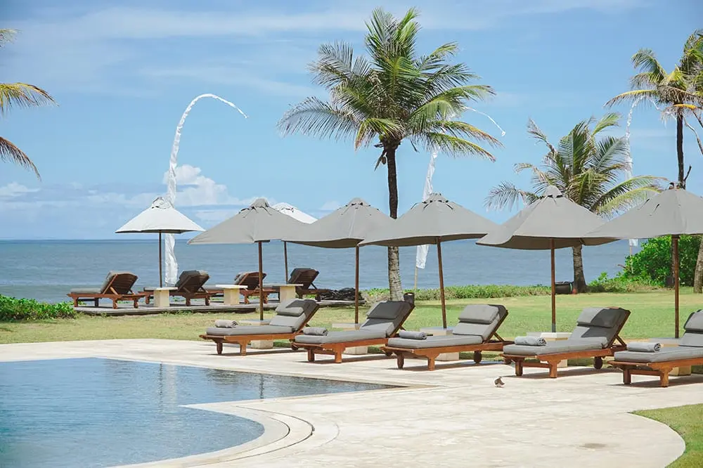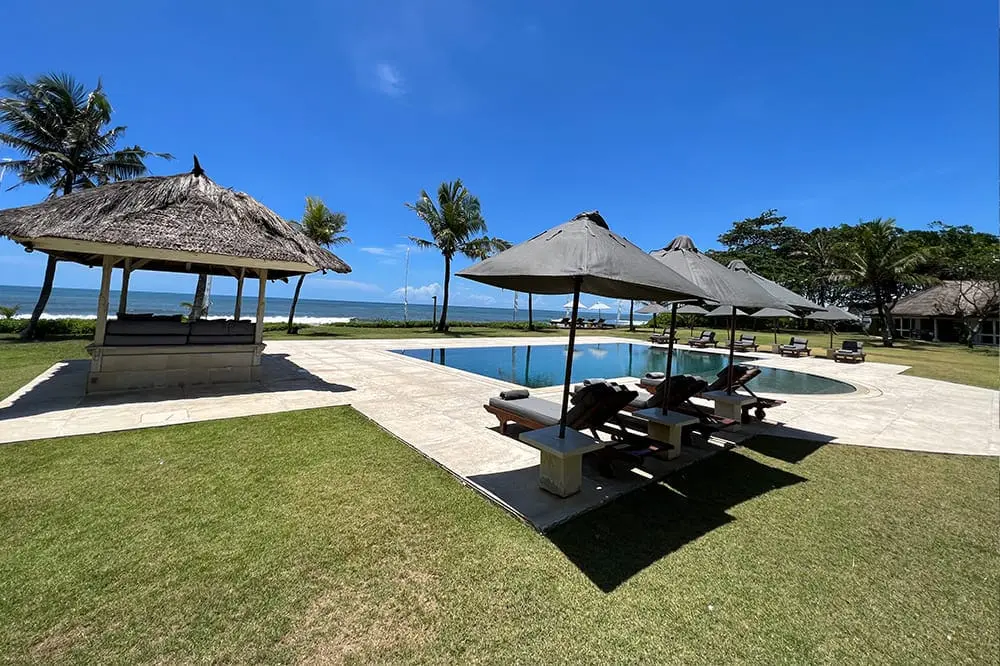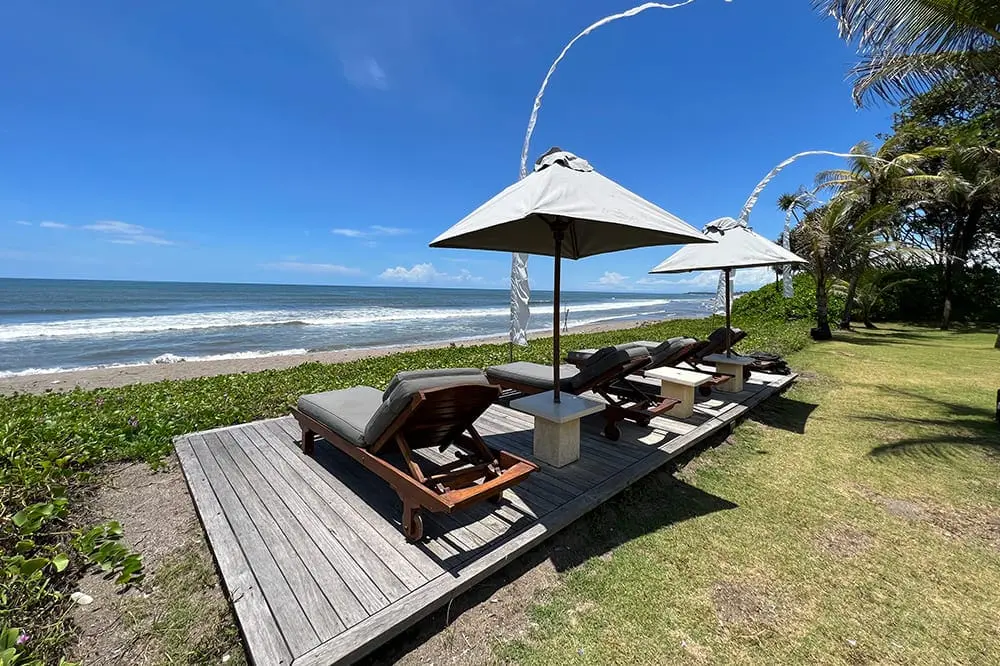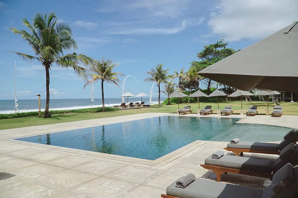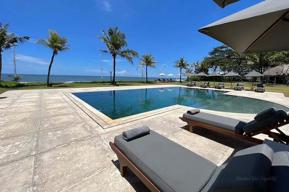 - Breathtaking beachfront location: Nestled on Bali’s southwest coast with over 100 meters of direct beach access.