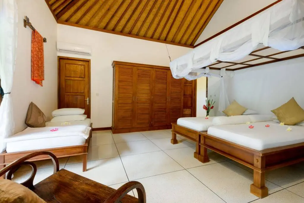 Villa Beten Bukit is a spacious and exclusive villa located in Pemuteran, a renowned diving destination in the northwest of Bali. Situated amidst tropical gardens, this luxury villa offers a tranquil environment with stunning views of the West Bali National Park. The villa is centrally located in Pemuteran, providing easy access to the local Balinese culture and just 800 meters from the ocean. Built-in 2007, the villa boasts a living area of 355 m² and is surrounded by a lush tropical garden spanning 40000 m². The villa’s design blends traditional and western architecture seamlessly, harmonizing with the natural surroundings. It features two spacious bedrooms with air conditioning and a private pool.
