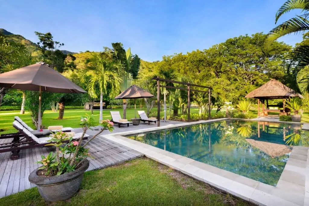- Enjoy the private pool, sun loungers, Balinese gazebo, and library.