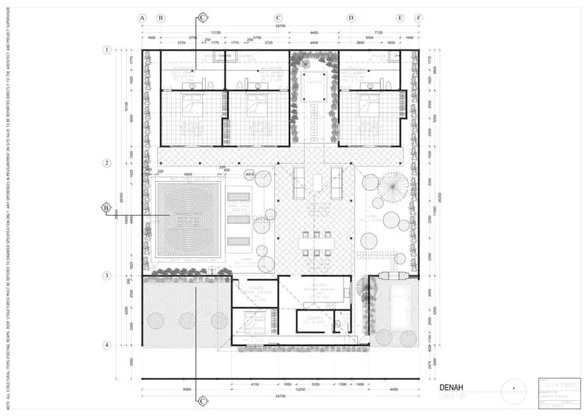 Part of the Villa Damai complex, this villa is nestled behind popular restaurants, bars, boutiques, and other resorts, with the beach just a short walk away. The villa’s simple yet elegant design incorporates soft tones and natural colors, creating a restful atmosphere. The open-style living and dining area greets you upon entry, while the kitchen sits to the left. The first bedroom stands alone on the right side, featuring a semi-outdoor bathroom. A Balinese-style gazebo sits between the first bedroom and the two additional bedrooms, which are located side by side in another building.