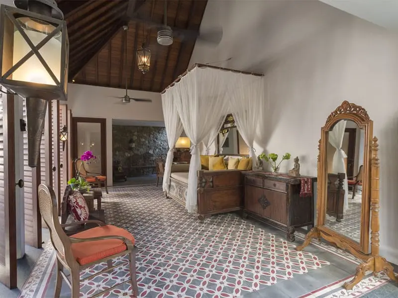 - Colonial-inspired décor: Antique furniture, oriental carpets, and heirloom art create a rich ambiance.