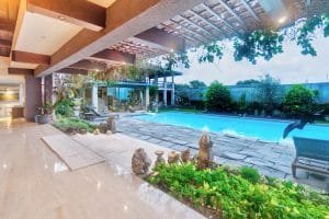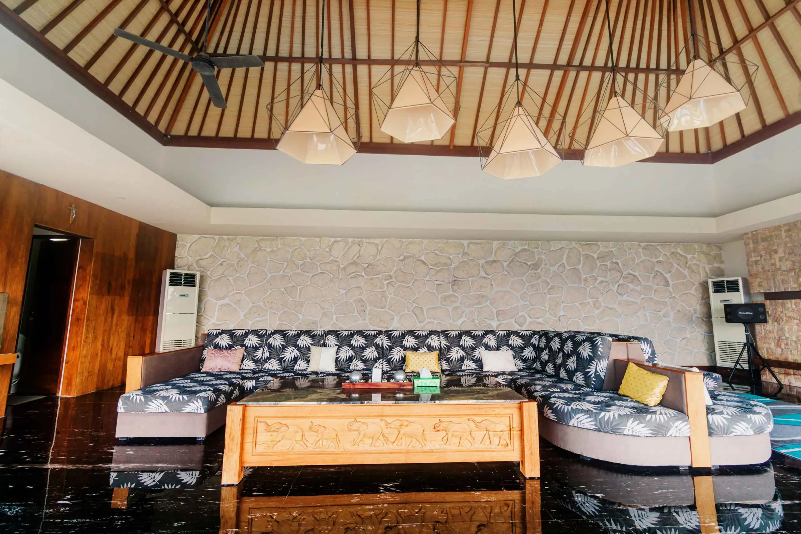 This four-bedroom villa creates a classic and inviting ambiance, complemented by various entertainment options such as karaoke, a gym, and a billiard board.