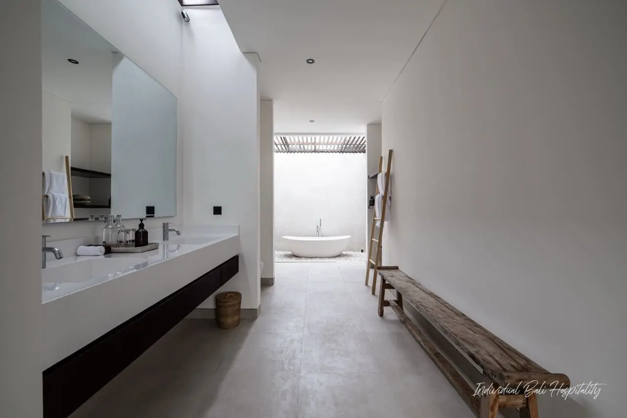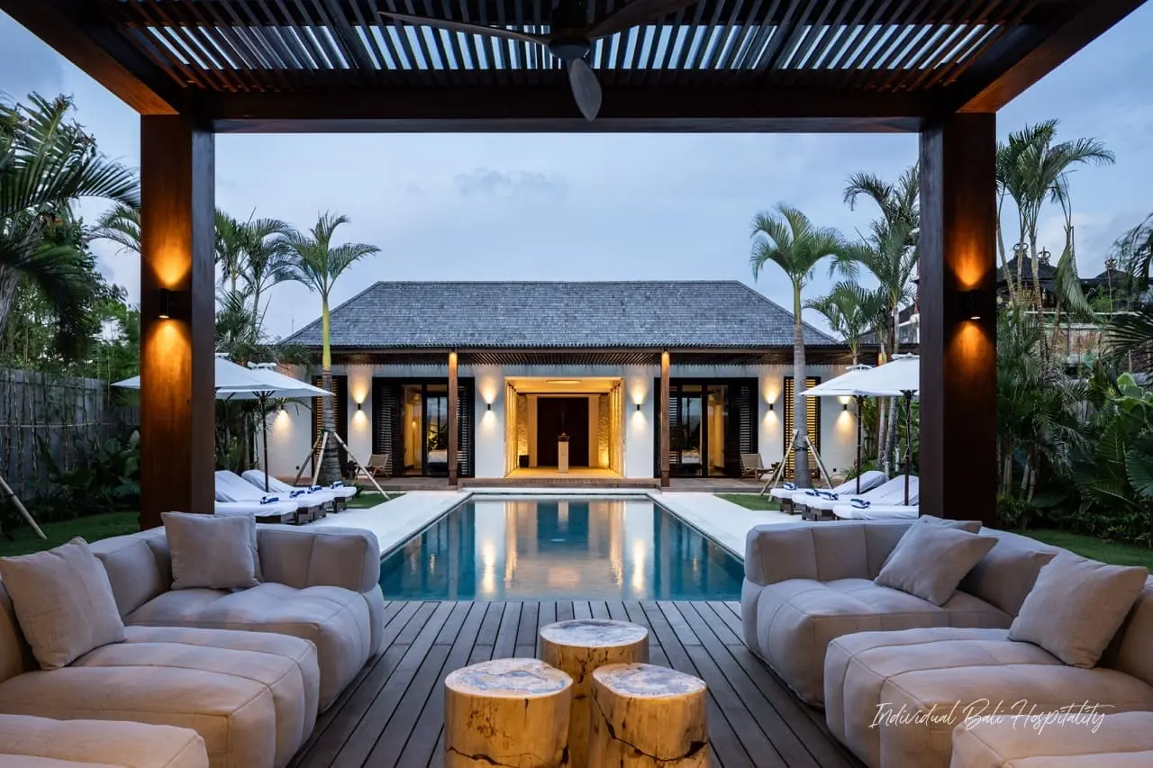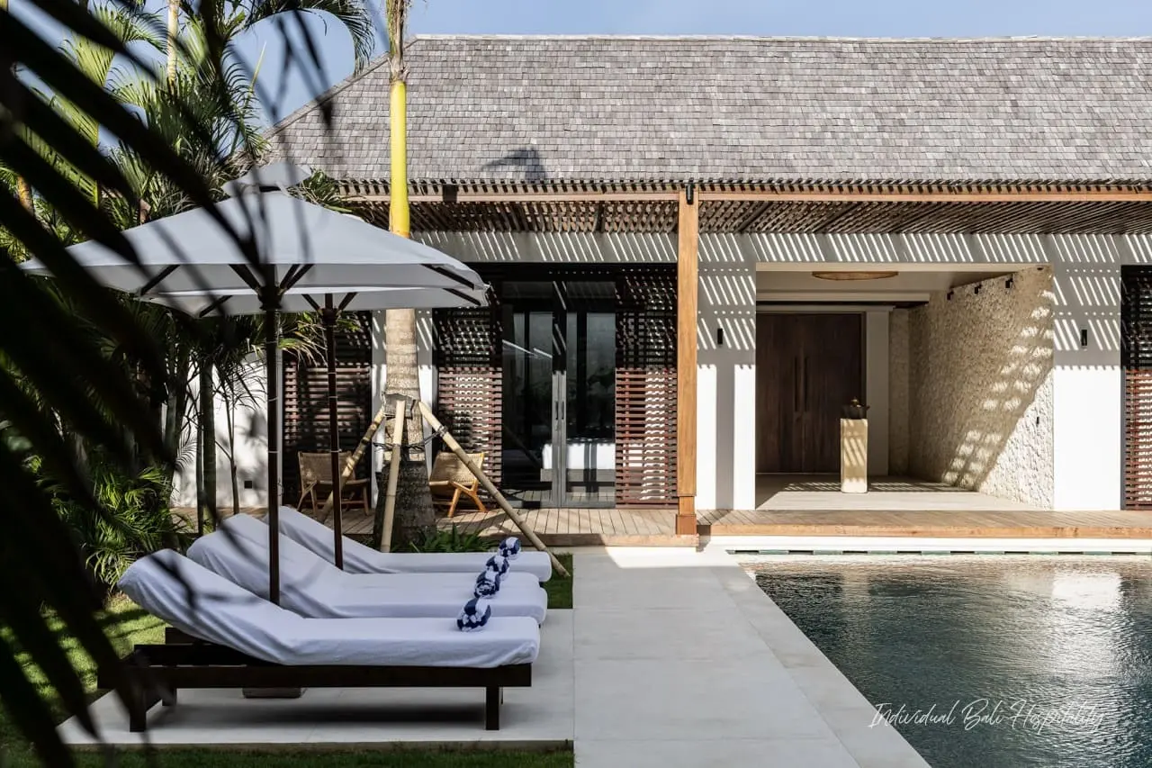 Villa Gendang in Seminyak offers the perfect blend of modern elegance and island charm. Designed with inspiration from Japan and Singapore, this monochromatic villa brings a sleek, sophisticated feel while keeping touches of Balinese spirit.