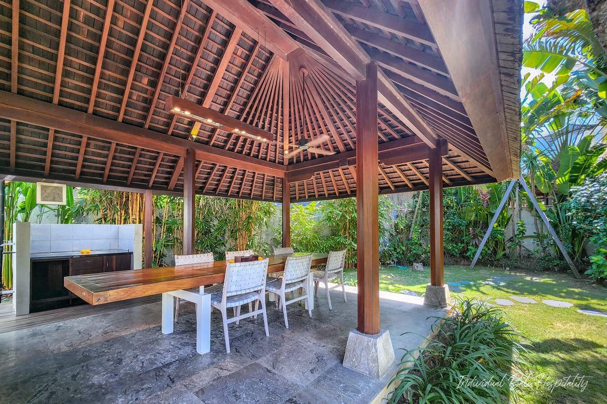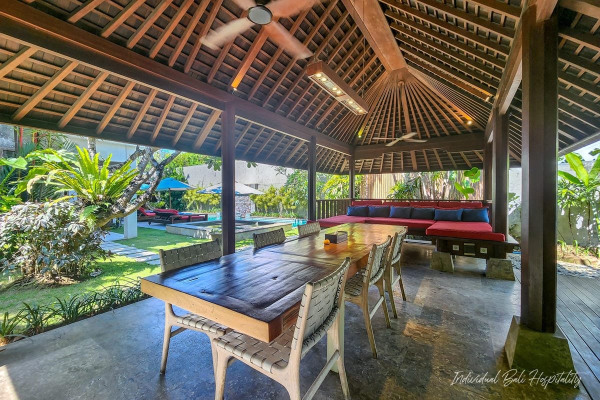 Named after the owner’s daughter, Villa Joss is family-friendly, offering plenty of outdoor space for children to play. Kids can enjoy the BOSE surround sound home theatre system with a 48″ flat-screen TV in the entertainment pavilion. For adults, there’s a separate media and lounge area for internet surfing or watching sports on the 45″ flat-screen TV in the garden ‘bale.’ The vibrant pool deck is adorned with large pots of flowering lotus, adding a splash of color to the surroundings.