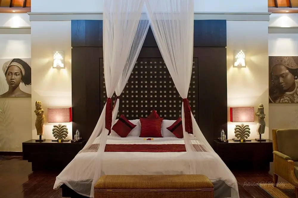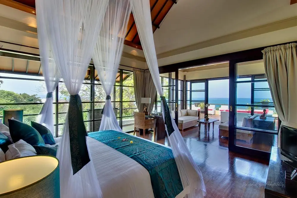 All five bedrooms are super-spacious and comfortable, each featuring a romantic canopied king-size bed, dressing area, and ensuite bathroom. The sound of the crashing surf will lull you into a deep dreamless slumber.