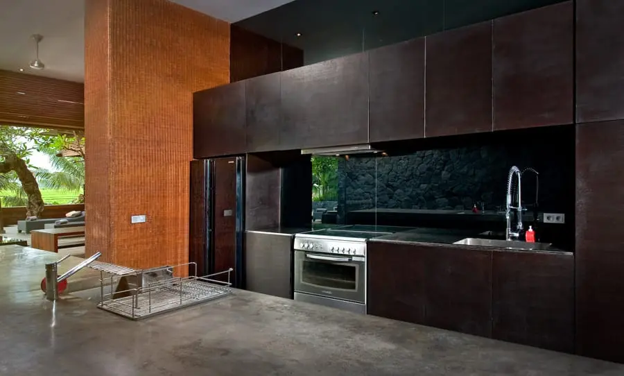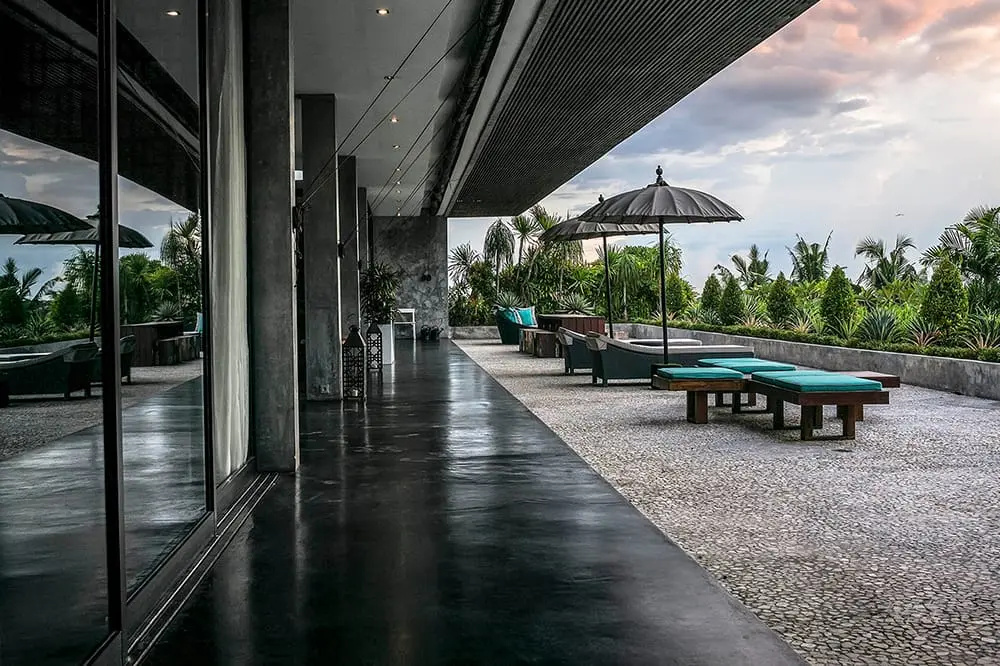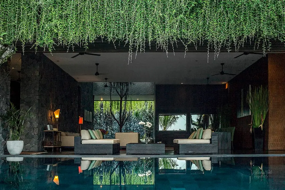 Villa Mana is an extraordinary 7 bedroom holiday villa nestled in Canggu, southwest Bali, offering breathtaking views of rice fields and mountains, along with attentive service provided by a skilled chef and an experienced team of staff. The Villa Mana revolutionary architecture and interior design embrace space and exude style, featuring smooth poured concrete floors, walls crafted from a combination of glass, stone, and wood, and 3.7-meter high ceilings. With its sleek black décor, rooftop accommodations, water features, hanging gardens, custom-designed furnishings, and state-of-the-art technology, Villa Mana stands as a vast, unique, and undeniably chic property.