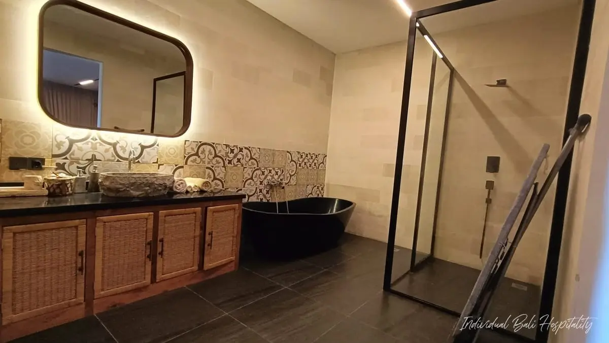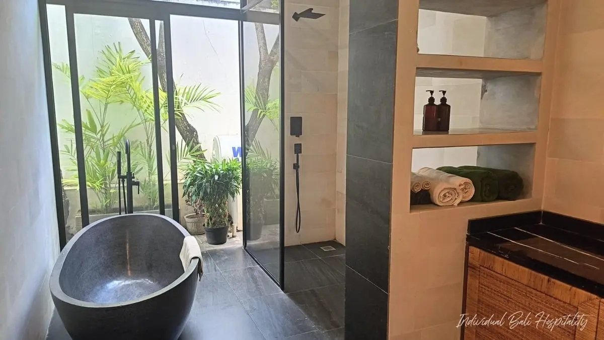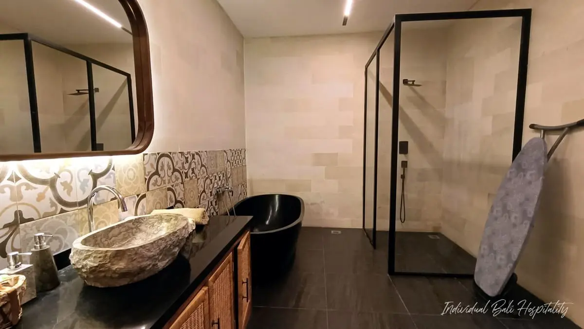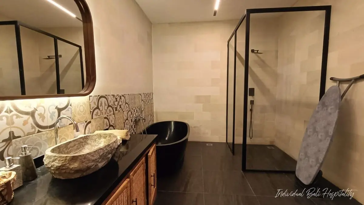 - Two bathrooms feature elegant stone bathtubs