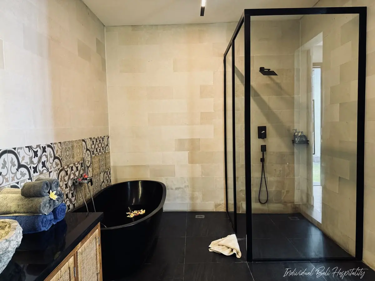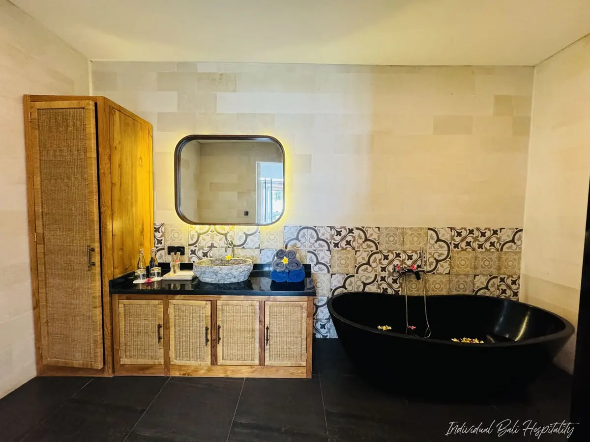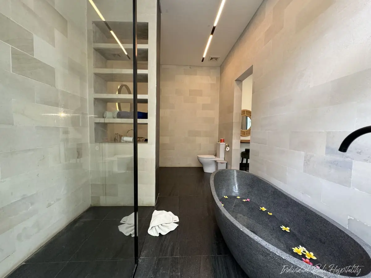 - Two bathrooms feature elegant stone bathtubs