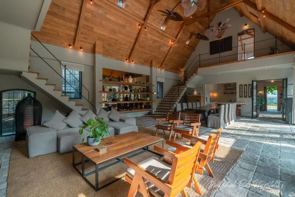 Tucked away in the serene neighborhood of Umalas, Villa Nehal offers a peaceful escape surrounded by rice fields and tropical landscapes. This five-bedroom villa beautifully blends traditional Balinese charm with modern Western comforts, creating a welcoming space for families and groups.