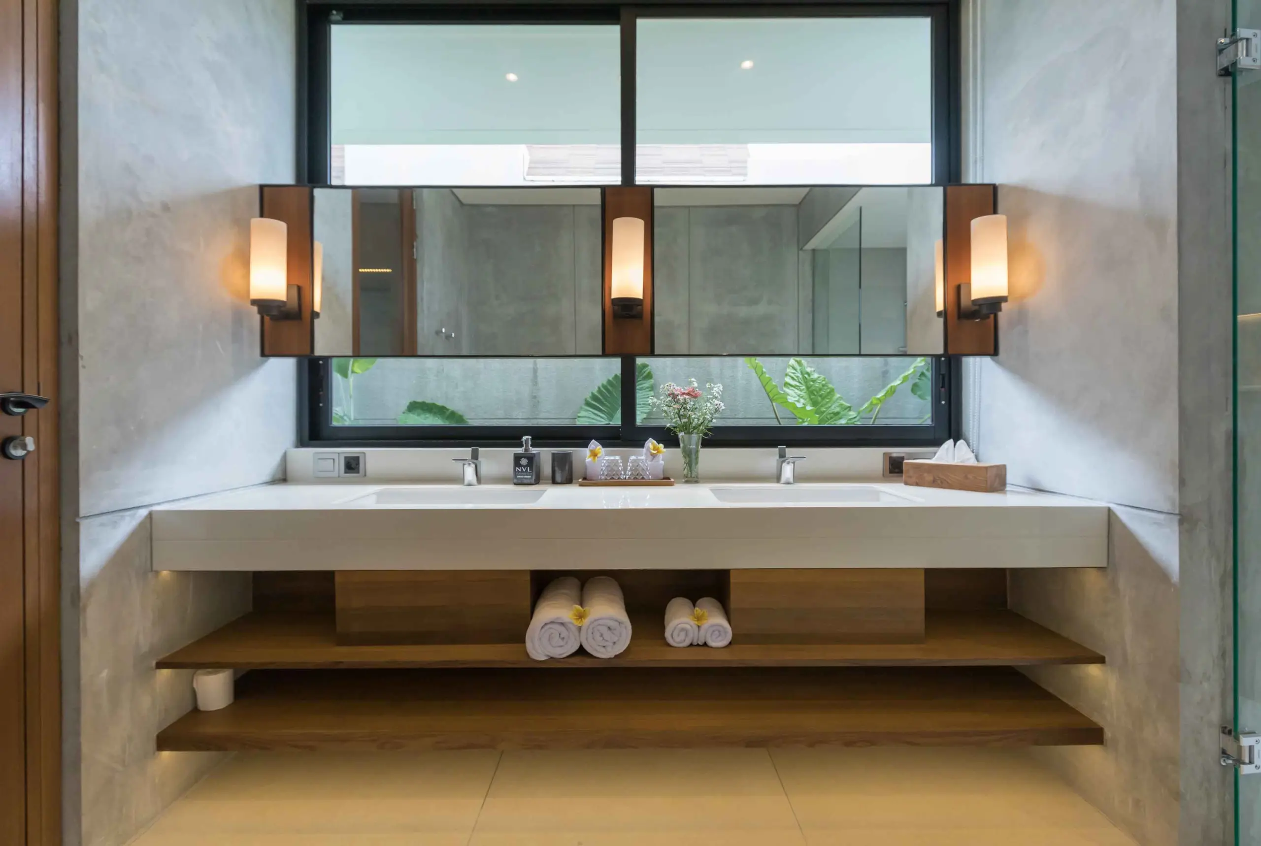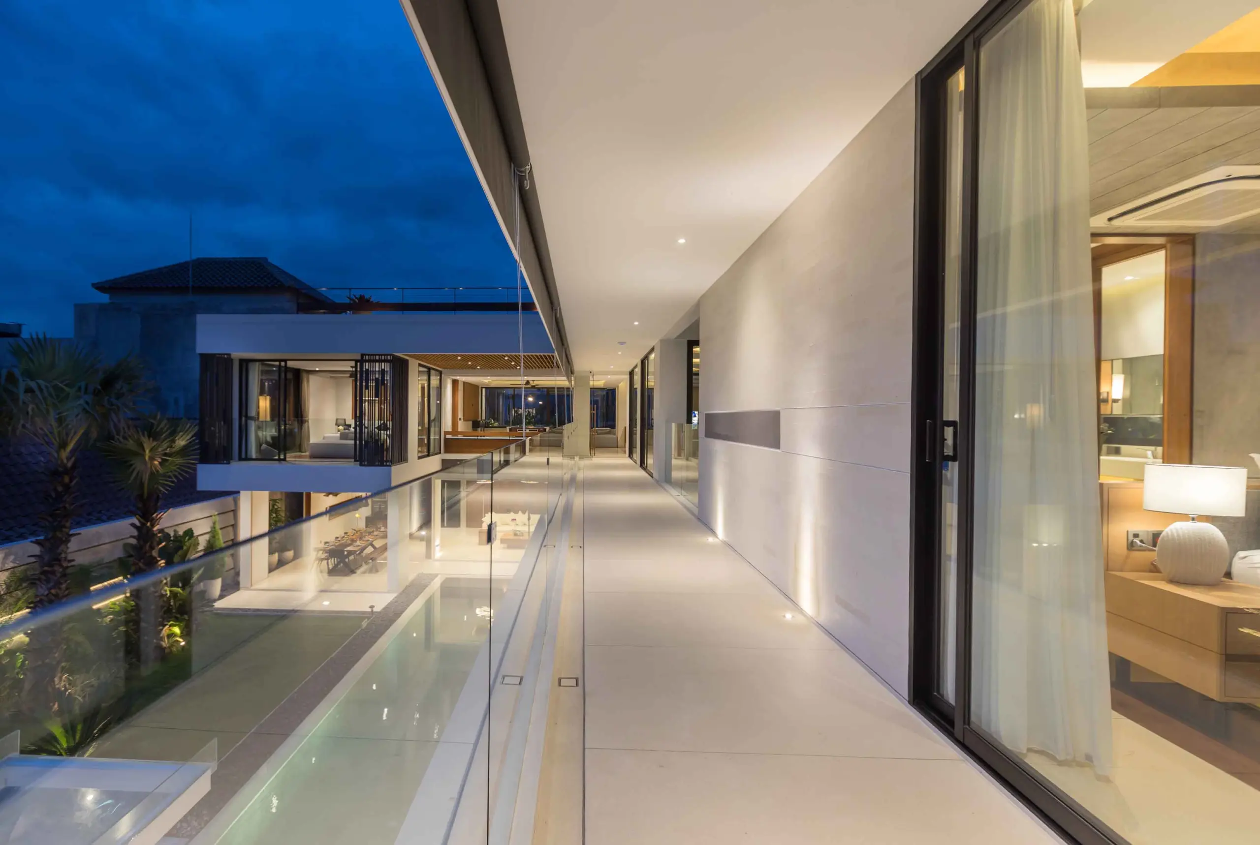 - Tropical-infused luxury with floor-to-ceiling windows, electric curtains, art décor.