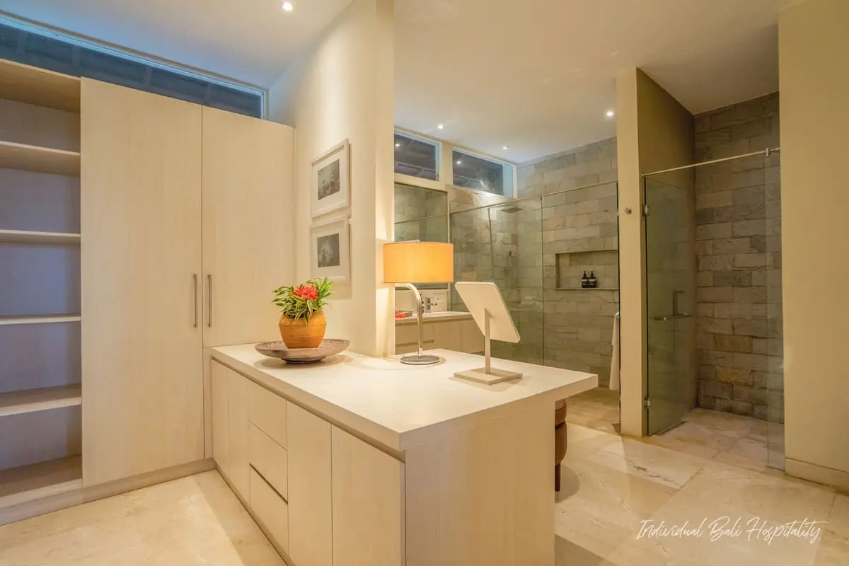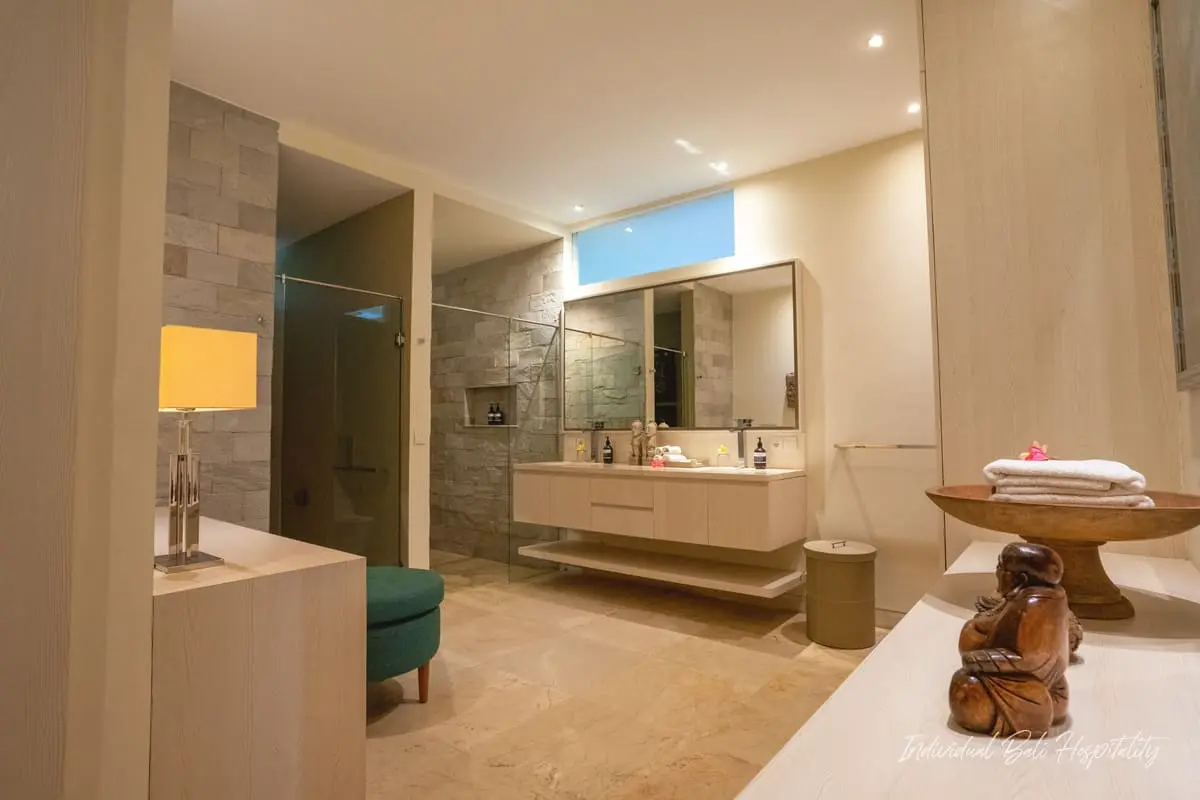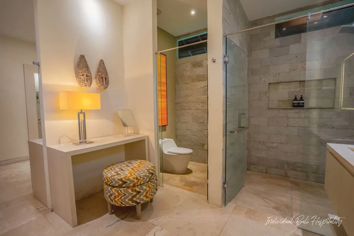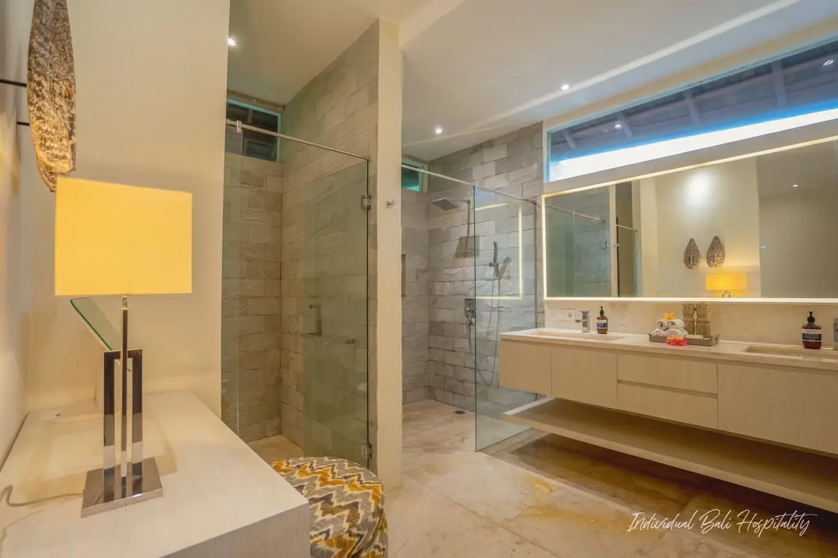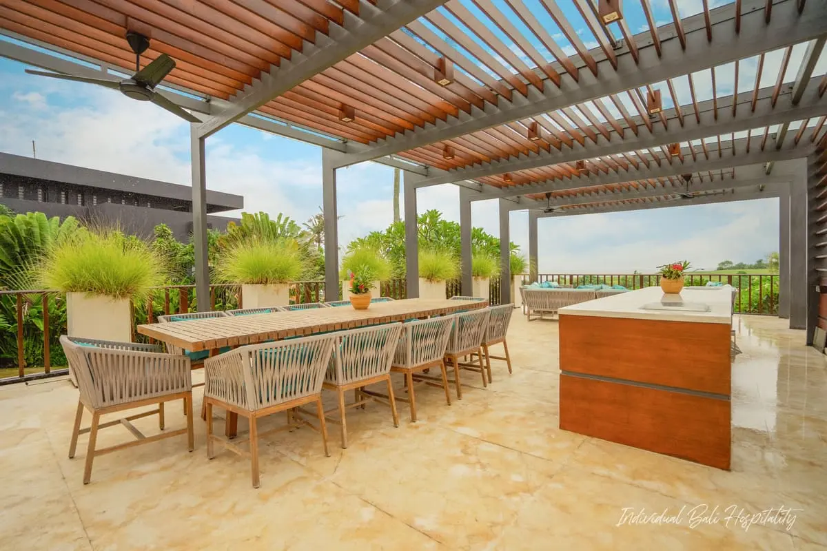 Outside, enjoy your private pool surrounded by tropical greenery. A rooftop terrace offers panoramic ocean views, perfect for evening sunsets. Omekai Cemagi delivers the ideal mix of Bali’s beach lifestyle, modern comforts, and total privacy.